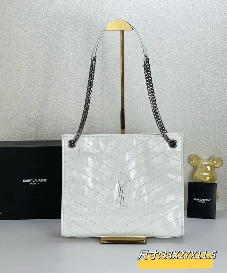 YSL NIKI Wrinkled retro oil wax skin Shoulder and backbody tote bag white 577999 size: 33*27*11.5 cm