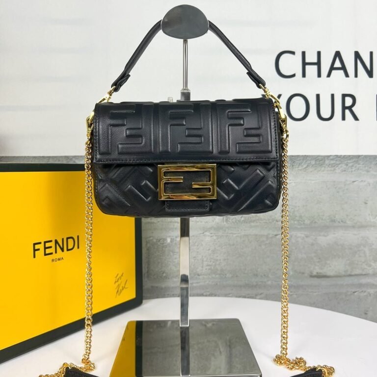 FENDI BAGUETTE Mini Chain Strap Black Handbag Size: 4*18*11cm