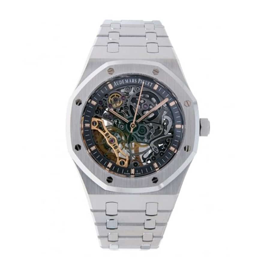 The Audemars Piguet Skeleton Replica is a high quality watch from the Royal Oak family. It features an automatic movement with a caliber AP 3132 and a power reserve of 60 hours. The case is made of 904L stainless steel and has a sapphire crystal. It is 41.00 mm in size and 09.09 mm in thickness. The bracelet is also made of 904L stainless steel and has an AP folding clasp. The dial is steel with stick/dot indices and Royal Oak hour markers. The watch has a double balance and is water-resistant up to 30m.