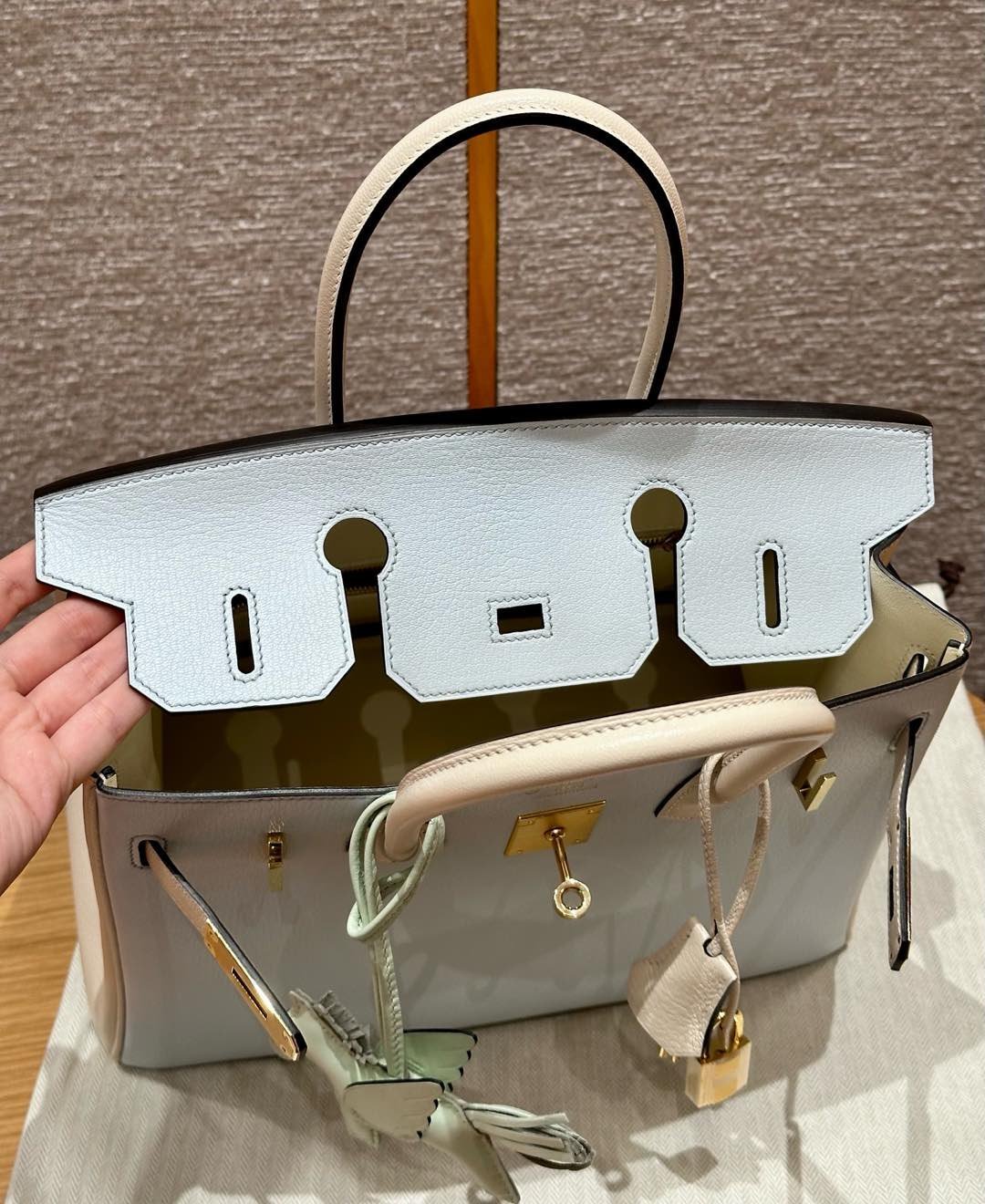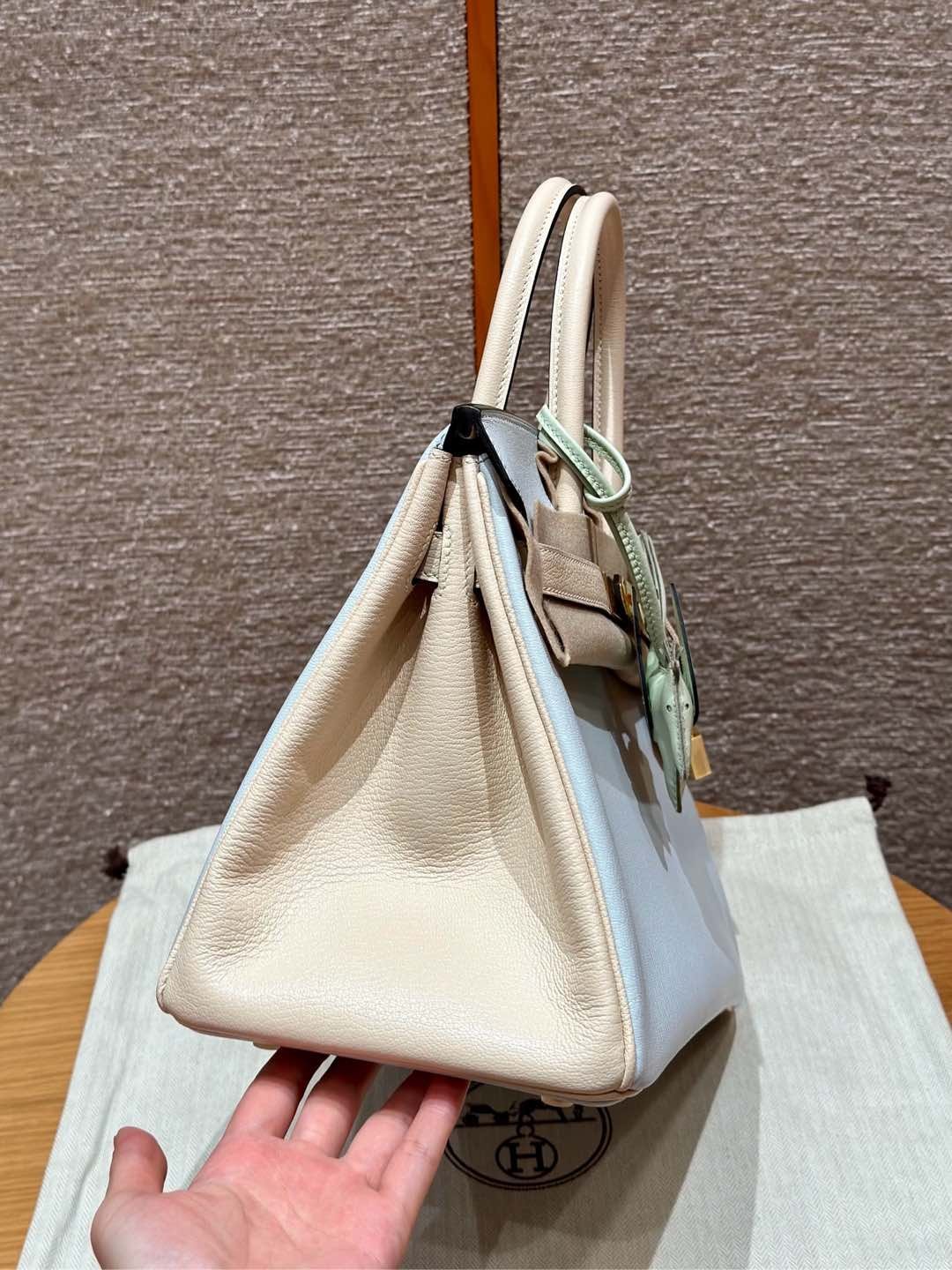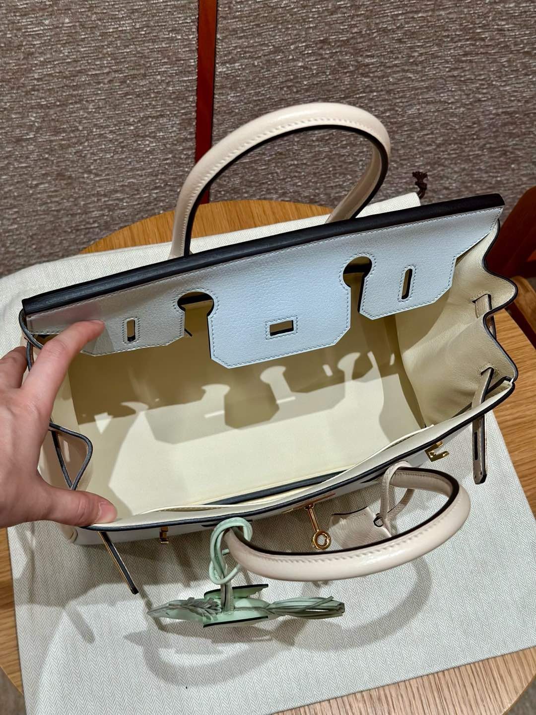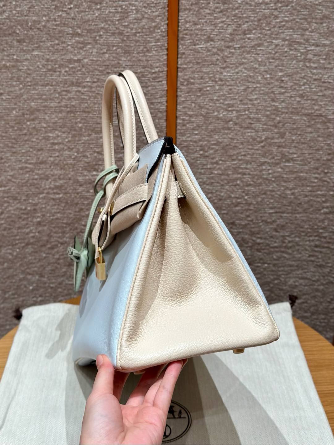 Style:Birkin Colour:T0/Blue Brume/i2/Nata Size:30*22*16cm Leather:chèvre From France Hardware:gold