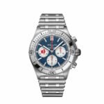 Breitling Chronomat B01 42 Six Nations France: A Patriotic Timepiece The Breitling Chronomat B01 42 Six Nations France is a limited-edition watch that celebrates the spirit of French rugby. Crafted from robust 904L stainless steel. it exudes a sporty elegance with its 42mm case and sleek. steel bezel. Beneath the scratch-resistant sapphire crystal lies a vibrant blue dial. adorned with crisp ceramic indices and luminous hands for optimal legibility.