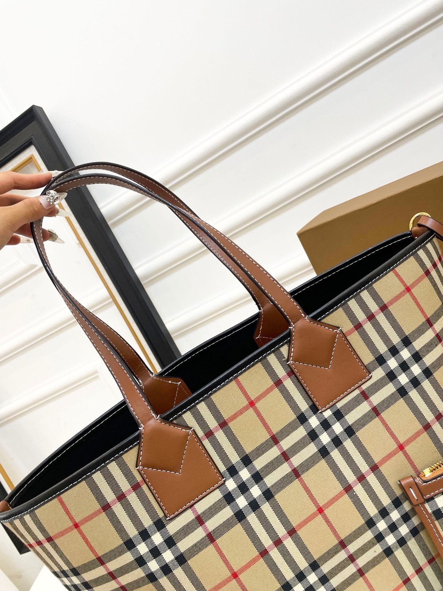 Burberry shopping bag handbag fashion circle essentials Get up New Burberry never worry about sales temperament placed there [strong] good quality! 👍🏿 Hong Kong bought version. be sure to do the best. 😍😍 the original hardware size 35*16*29cm