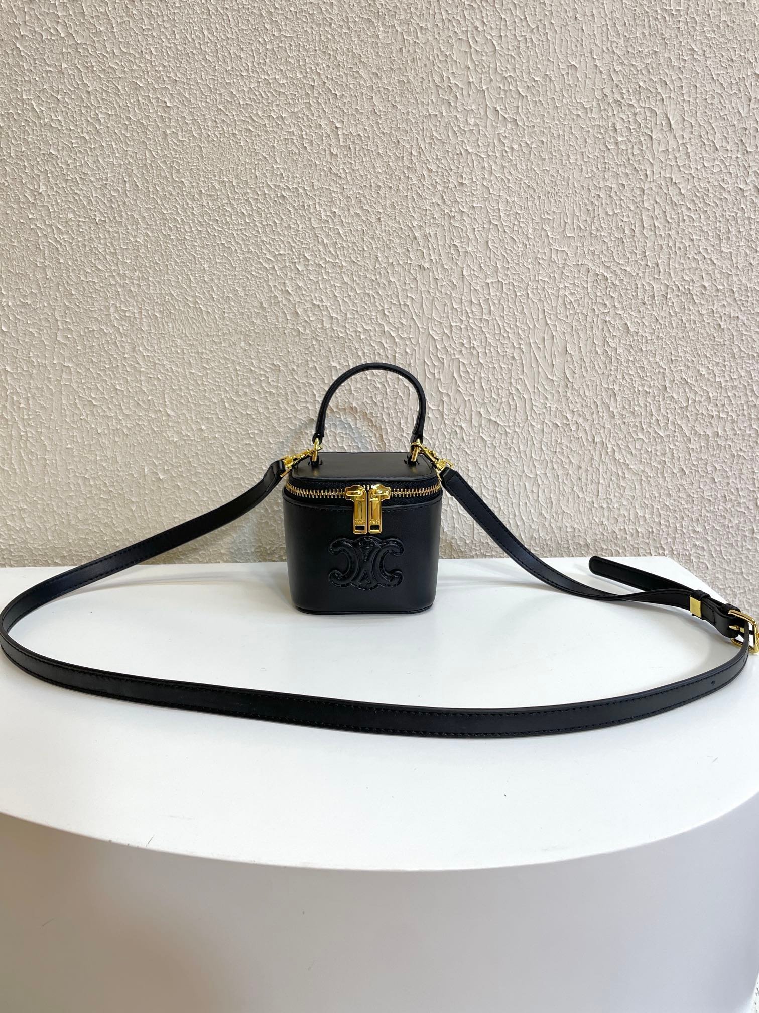 CELINE 23s Spring/Summer – Mini smooth leather makeup case Black 8080 Size: 9.5* 8* 9cm