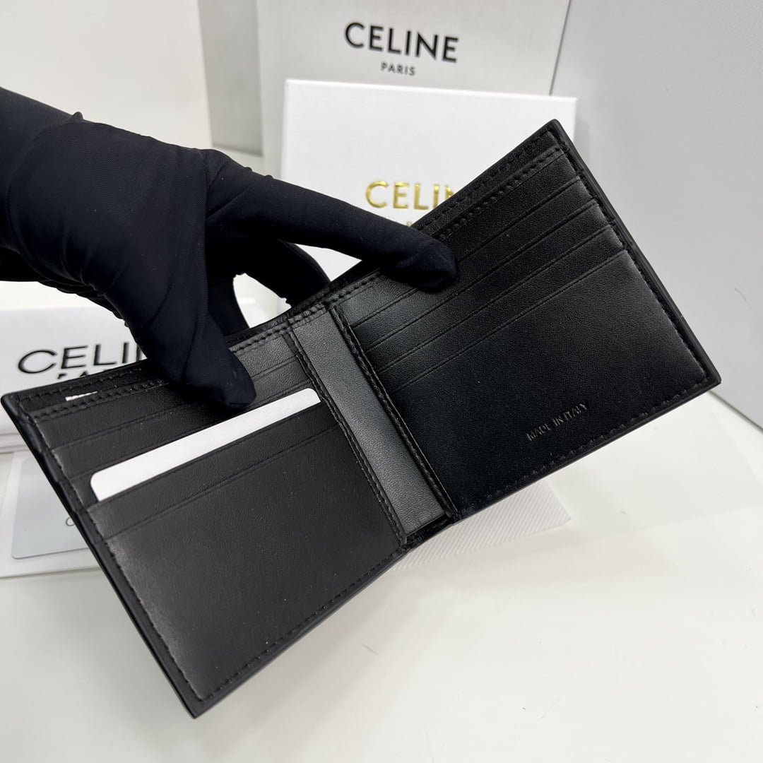 CELINE Black printing Short Wallet Size:11*10*5cm