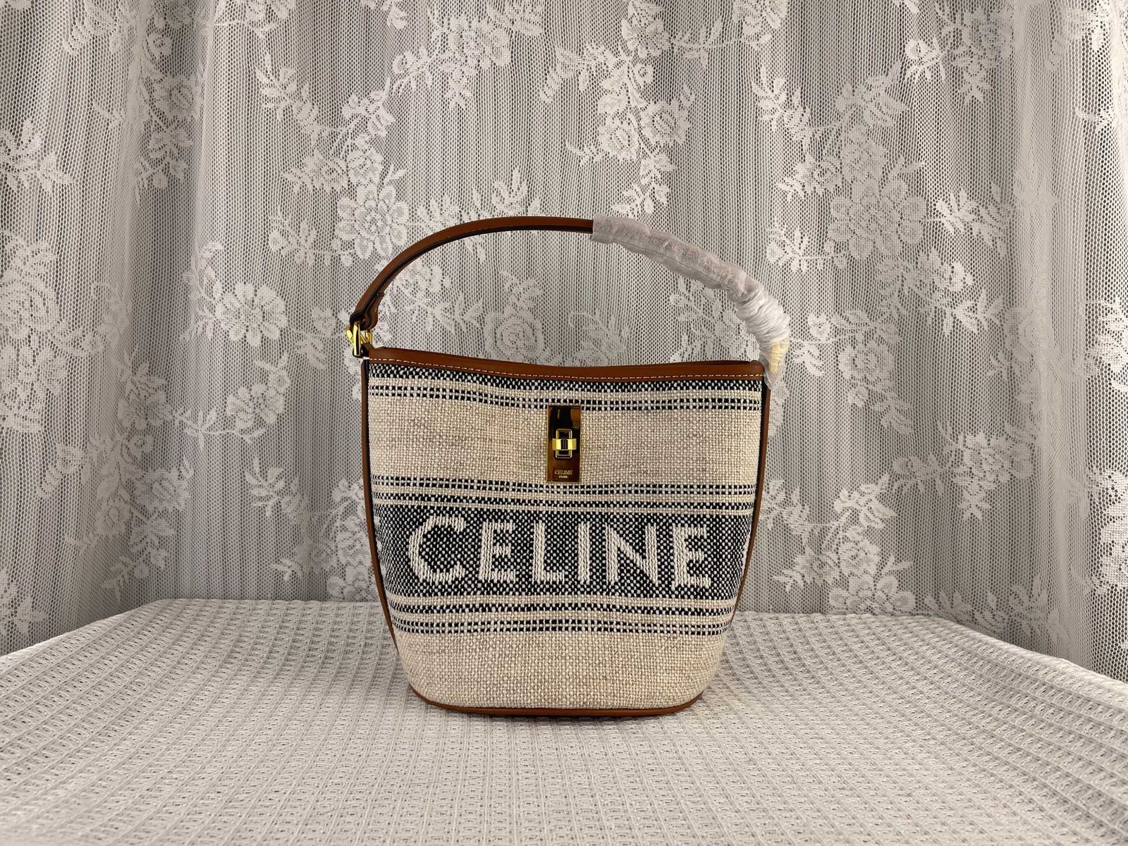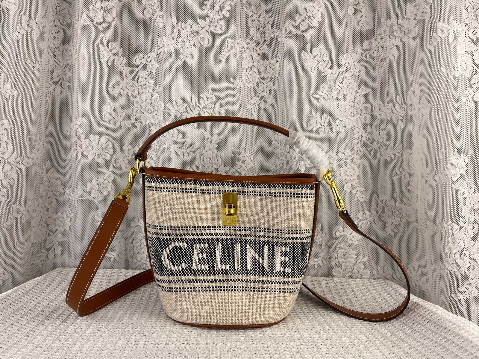 CELINE Fabric cow leather mini bucket bag Size:16*18*16cm
