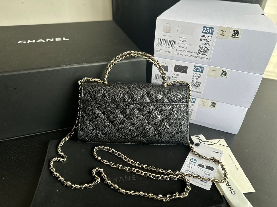 chane1🔍23p Chanel dark horse kelly long handle bag 🤍 Model :ap3168🦢💕 Material: litchi cofskin 💎 super positive a long model can put mobile phone not waste whether the hand draw and inclined pre-is good to see o dark horse ⚜️ to take it 🌷size: 19x10x4.5cm