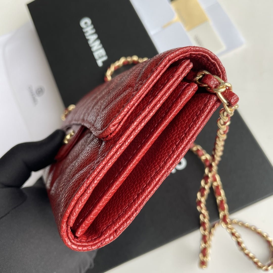 Chanel chain crossbody bag Cowhide with diamond lattice caviar Red A50076 size: 18*10.5*3.5cm