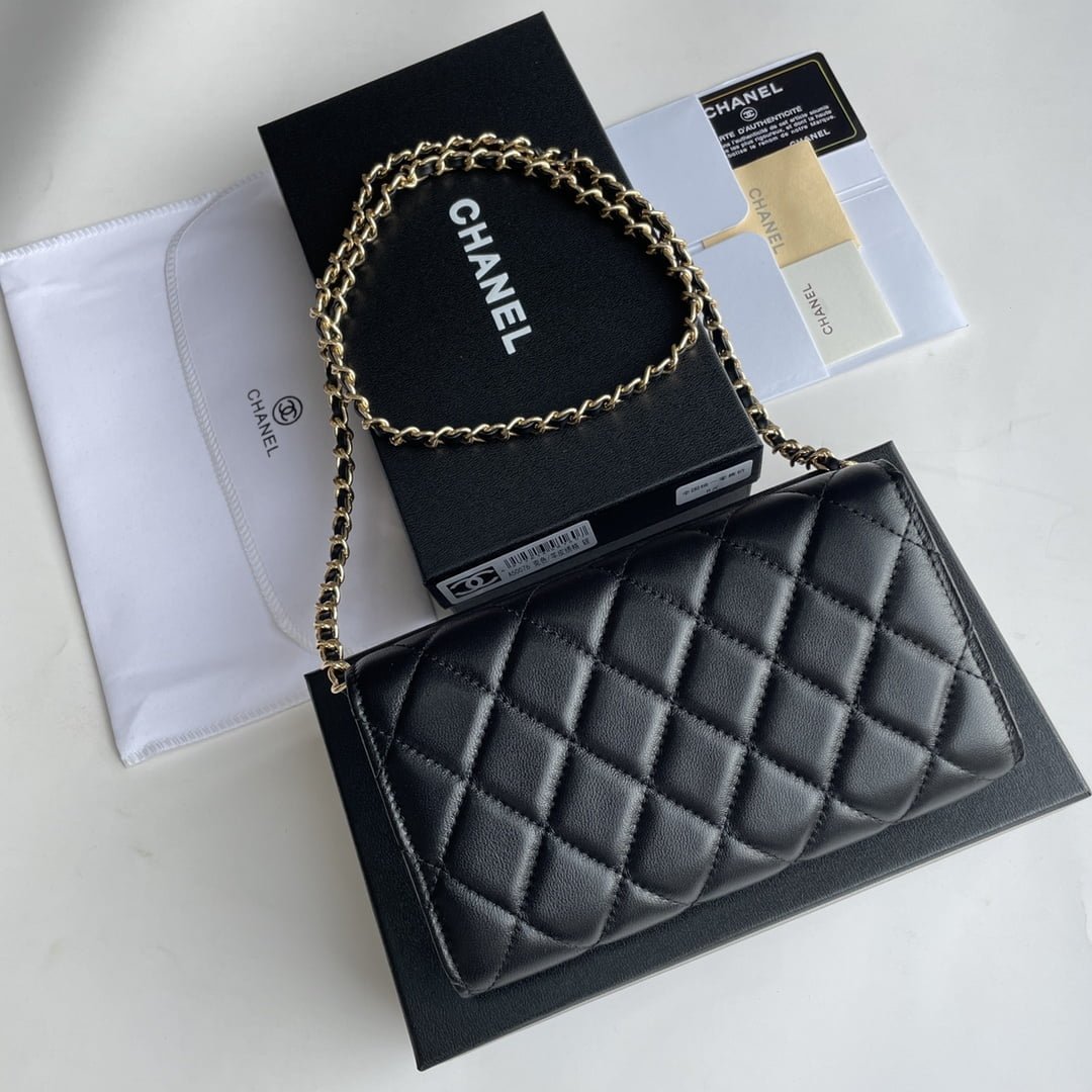 Chanel chain crossbody bag Cowhide with diamond lattice gold hardware black A50076 size: 18*10.5*3.5cm