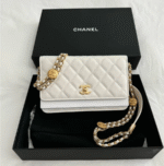 CHANEL WOC (Wallet On Chain) is a classic bestseller, selected from high-end materials such as caviar cowhide and soft sheepskin. It is hand sewn with diamond grids and paired with exquisite double-C hardware. The magnetic opening and closing process is convenient and durable. Featuring classic styles, double gold beads, and other popular styles, the chain is adjustable and supports single shoulder, crossbody, and multiple carrying techniques. The colors cover classic colors such as black gold and beige, as well as trendy colors such as pale pink and Cuban green. With a small capacity, it is suitable for carrying small items and is a versatile texture item for daily use and parties.