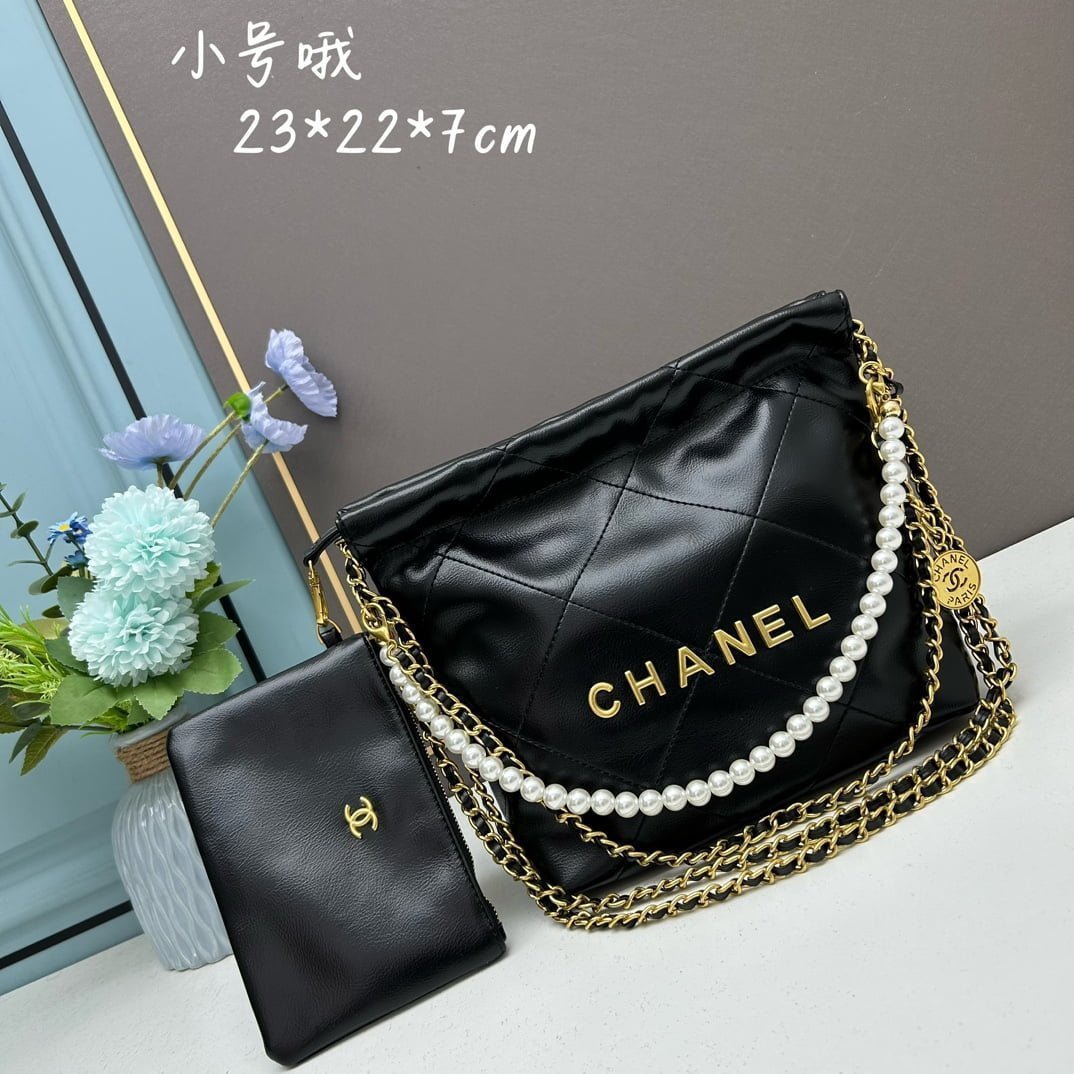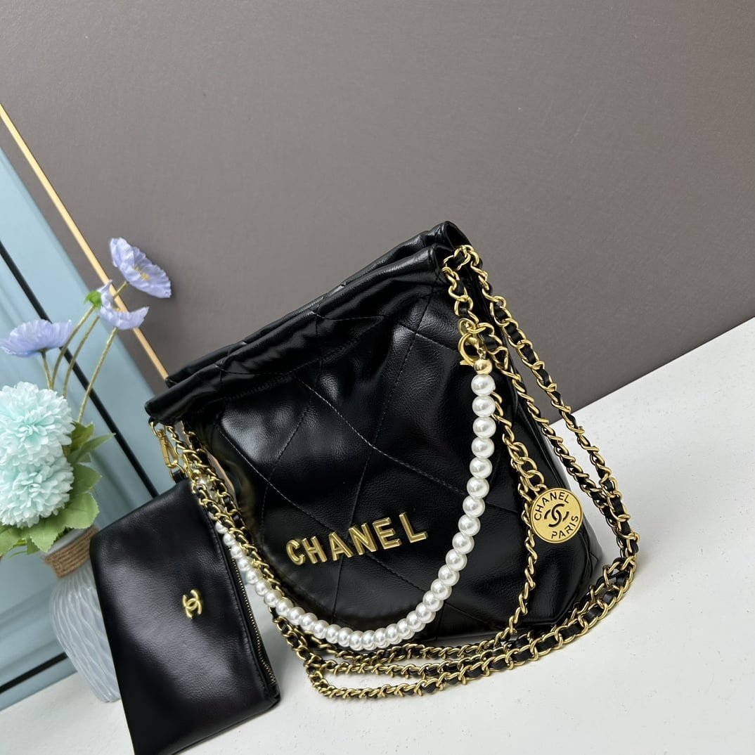 CHANEL Pearl garbage bag black size: 23*28*22*7cm