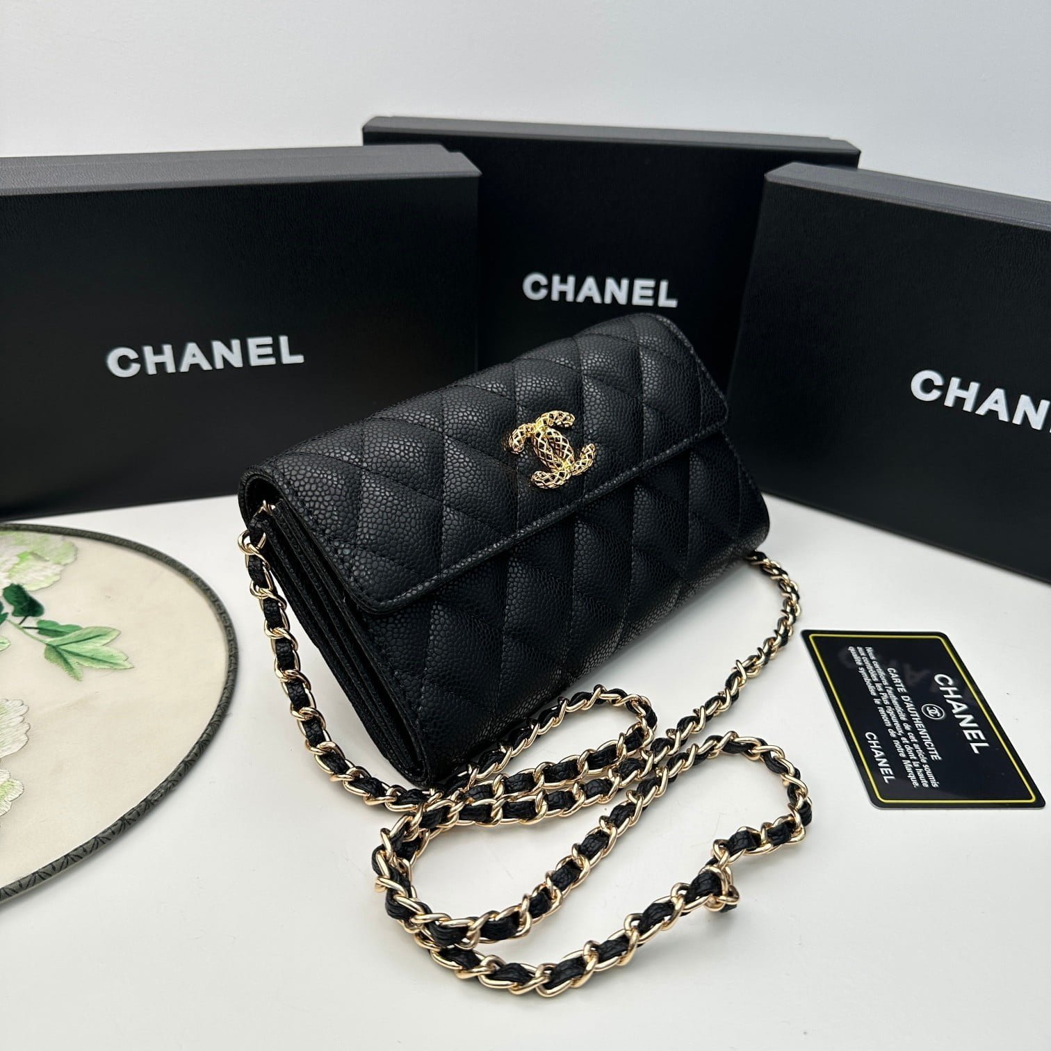 Chanel Rhombus caviar cowhide chain crossbody bag black 8001 size: 18*10.5*3.5 cm