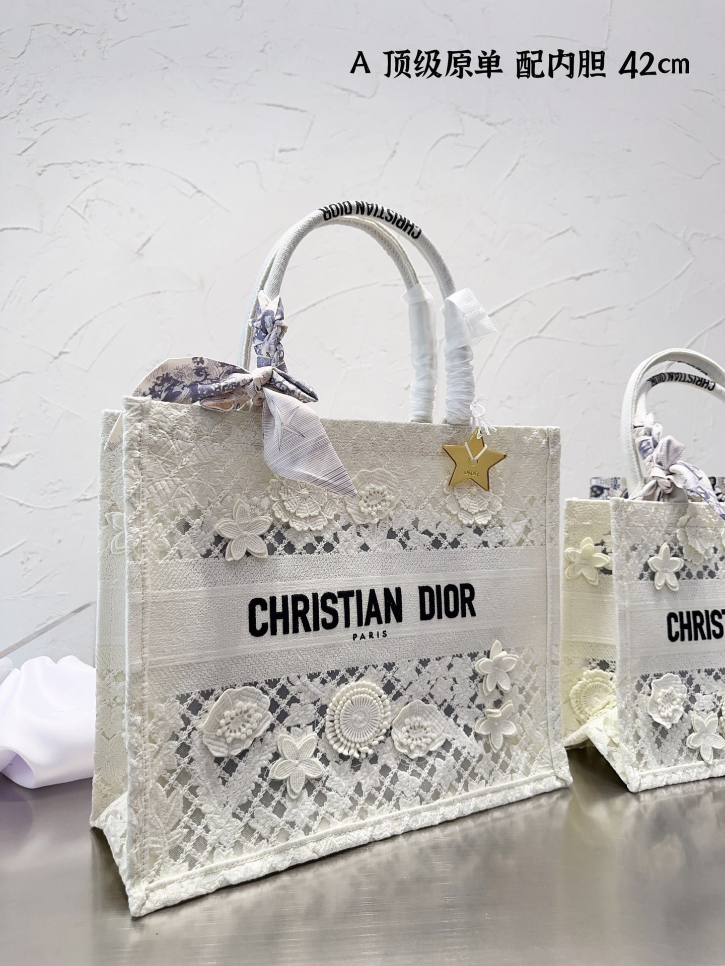 Dior 3D follower Embossed original cloth book tote bag white size: 42cm /36cm /26cm
