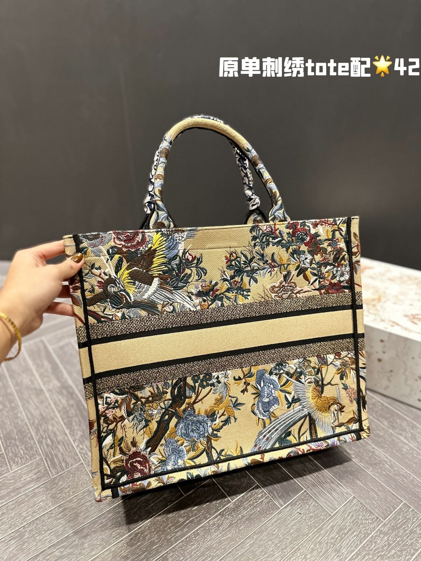 Dior embroidery tote bag size: 41cm