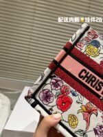 Dior Book Tote is an original work signed by Christian Dior Artistic Director Maria Grazia Chiuri and has become a classic of the brand. Designed to accommodate all your daily necessities. this small model is fully embroidered in a rose Dior Oblique pattern and emblazoned with the CHRISTIAN DIOR logo on the front. This handbag is Dior only