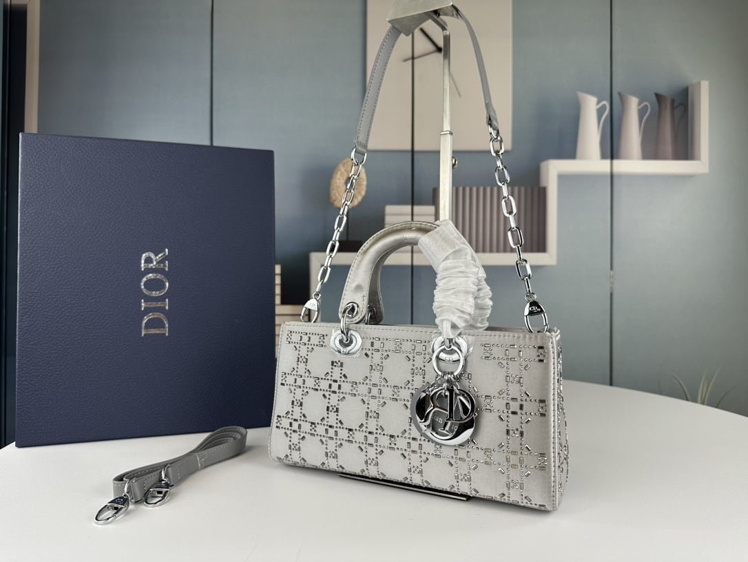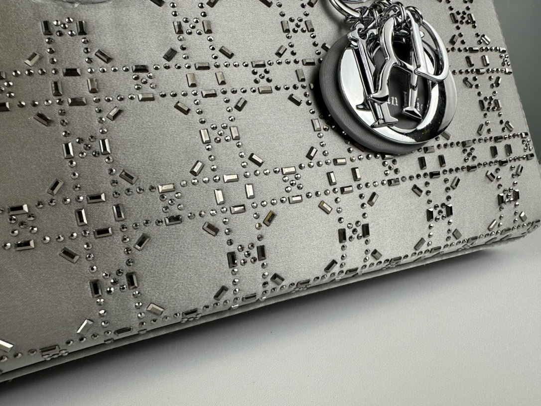 Dior satin diamond-encrusted Princess Diana bag grey 2320 size: 26*13*6cm