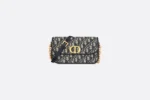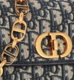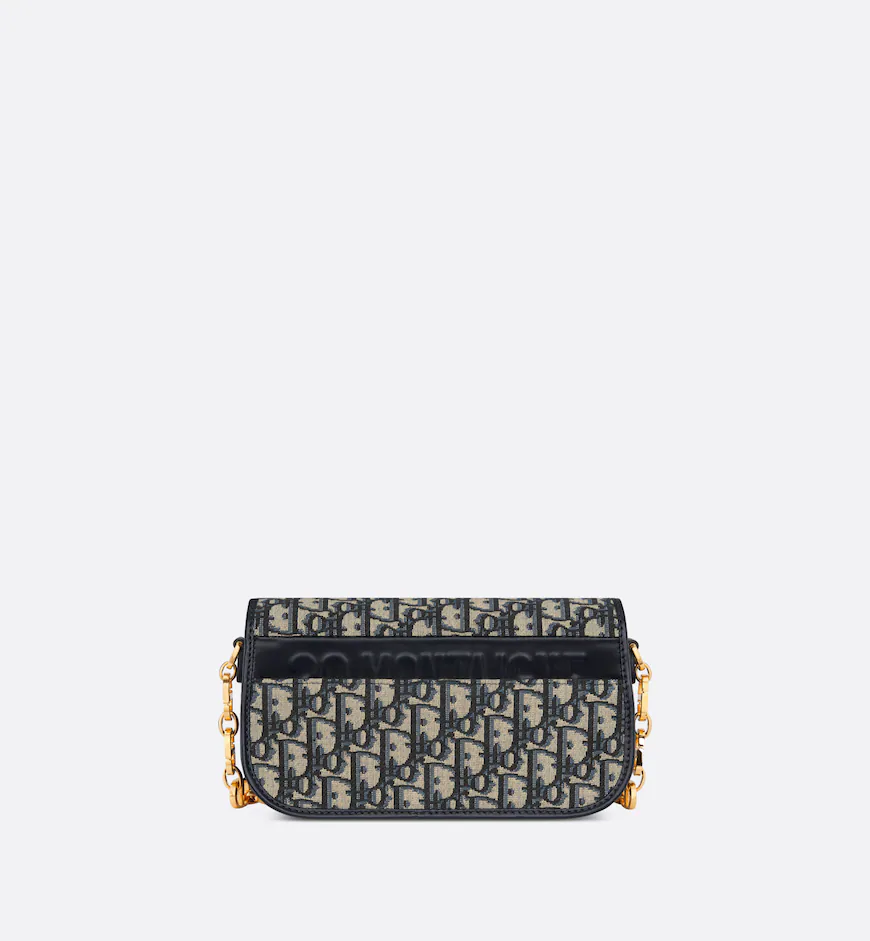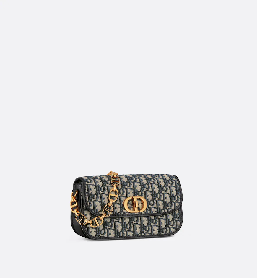 The 30 Montaigne Avenue bag enhances the hallmark line with a timeless and elegant style. Crafted in blue Dior Oblique jacquard. the rounded flap with delicate curves is punctuated by an antique gold-finish metal CD twist clasp inspired by the seal of a Christian Dior perfume bottle. The design is completed by other details. like the 30 Montaigne signature embossed on the back and the signature chain alternating gold-finish metal and enamel links. The small. gusseted bag features a refined silhouette that can be carried by hand. worn over the shoulder or crossbody.