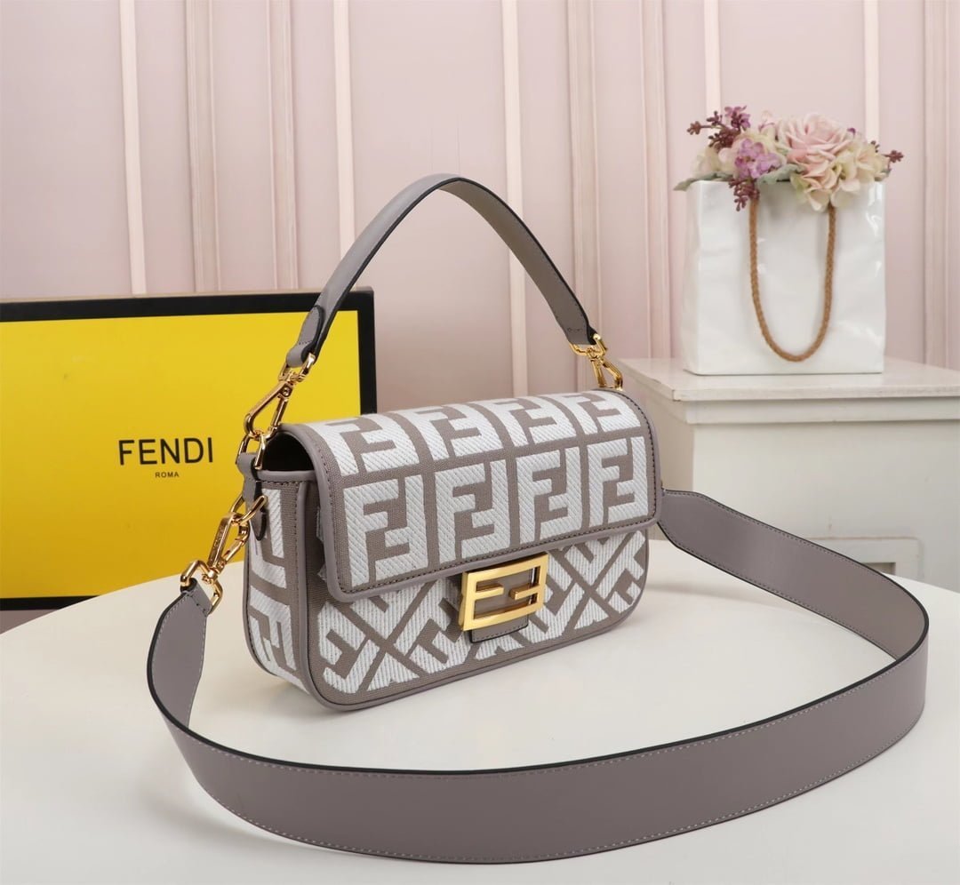 2023 Fendi’s latest baguette bag: very summery; F Embroidery color. This Fendi Baguette is sure to be a hot trend this summer! It looks great on the top; Attendance is also particularly high; It’s absolutely fine for a concave shape. Very lightweight. And its capacity is also very powerful; Easily meet your daily needs. With a short strap and a wide shoulder strap; Can be carried on one shoulder and crossbody. Very versatile. It’s easy to wear no matter what style you have. Carry it and you’ll be the brightest goddess in the crowd. Model F2029 Size 26-5-15CM