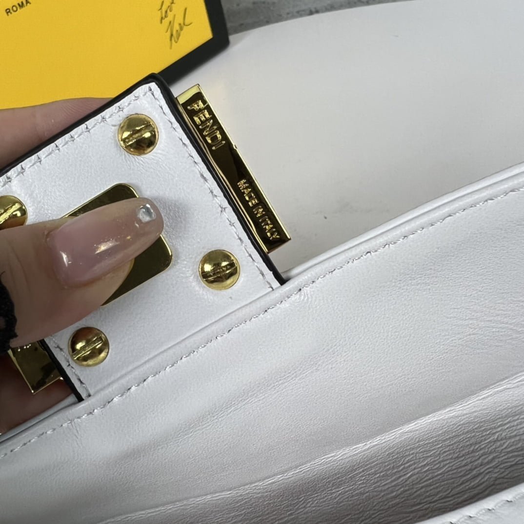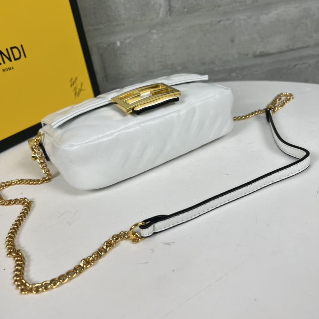 FENDI BAGUETTE Mini Chain Strap White Handbag Size: 4*18*11cm