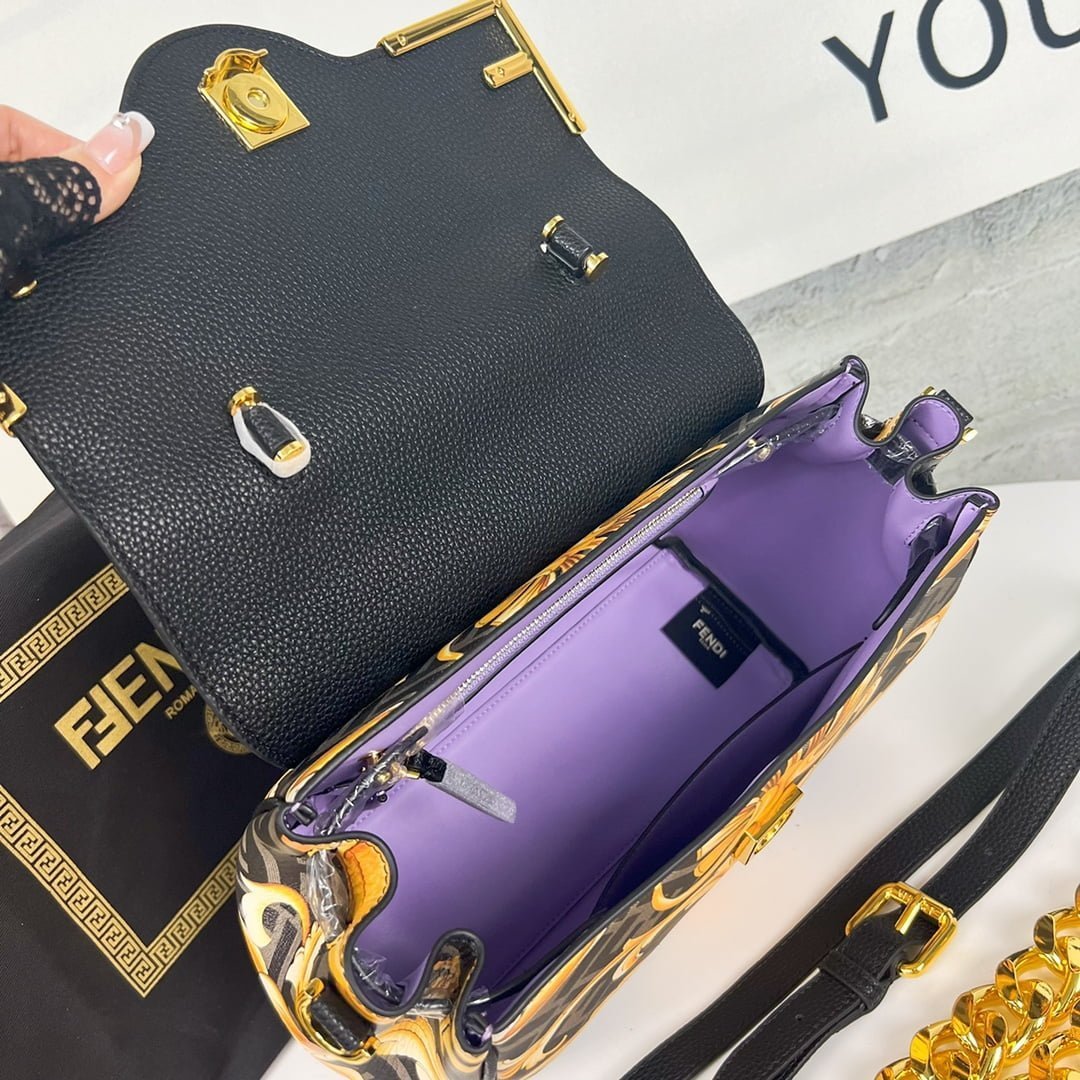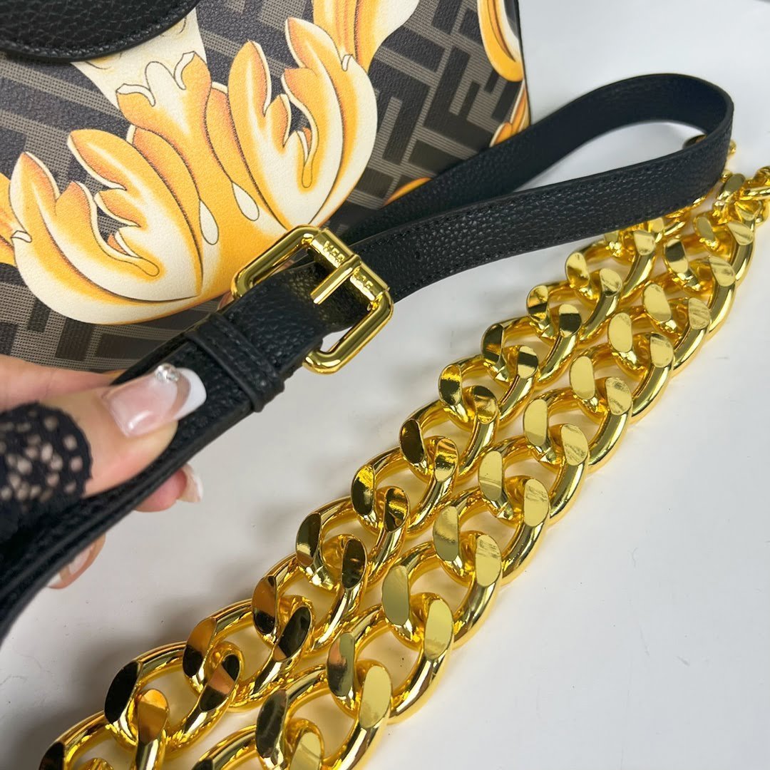Versace and Fendi Century 🔥. the Medusa collection. Versace’s signature La Medusa handbag is inspired by the creative exchange between Kim Jones and Donatella Versace. reinvented with Fendace Gold Baroque prints. Decorated with Medusa panels. flap with Fendi hardware accessories. all-in-one clutch can be carried. or can be used to replace the chain and leather shoulder strap crossbody. the capacity is just right. practical. elegant modern fantasy luxury. turn the head 100%