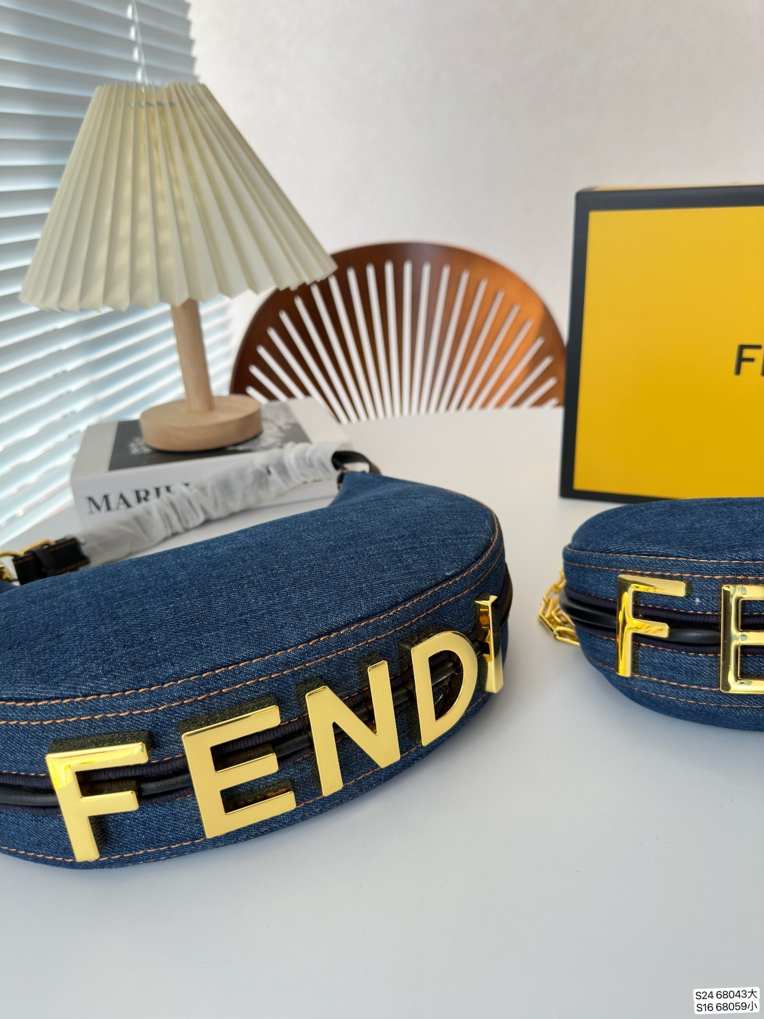 FENDI half moon bag Underarm bag jeans with chain strap Size: 28*16 cm/19*10cm