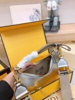 Be the first to review “FENDI Patent leather half moon bag Sliver and gold with chain strap Size: 34*16cm”