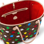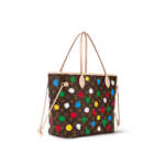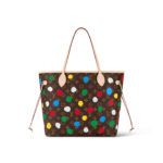 The spacious and elegant LVxYK Neverfull MM tote joins the Painted Dots theme as part of the new Louis Vuitton x Yayoi Kusama collaboration. Monogram canvas is decorated with the renowned Japanese artist’s signature dots. a unifying element in her work. A complex screen-printing process gives the colorful dotted pattern a 3D relief effect. adding a burst of vibrant energy to a practical carryall.