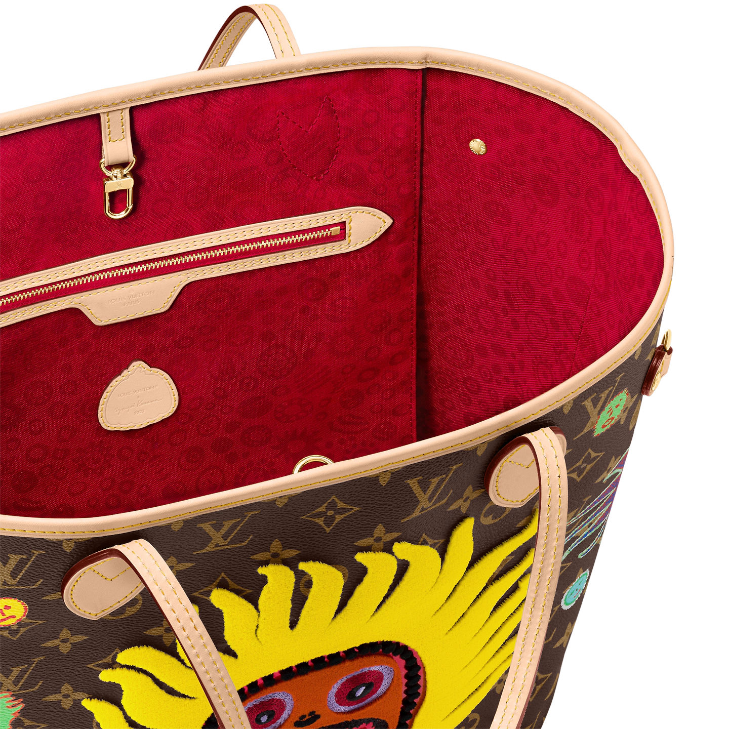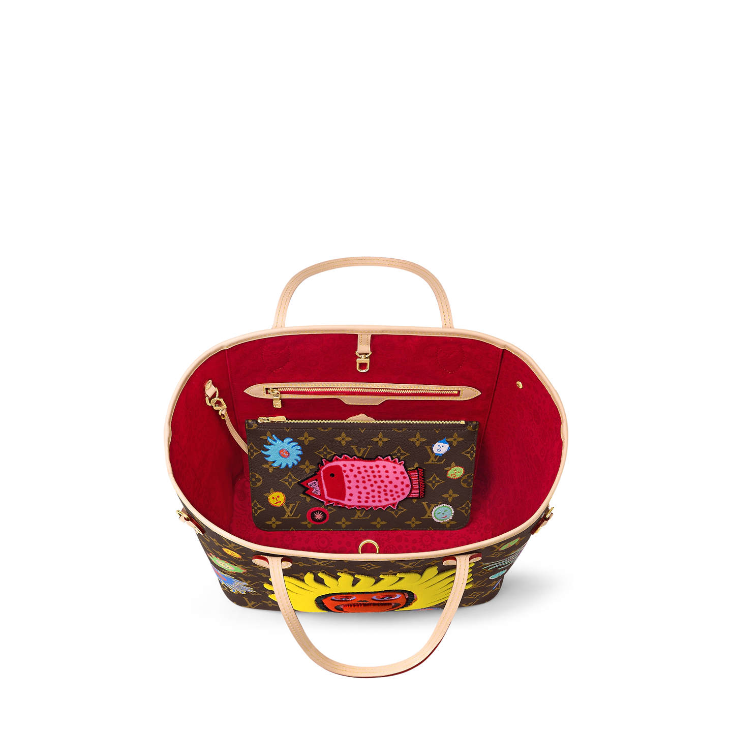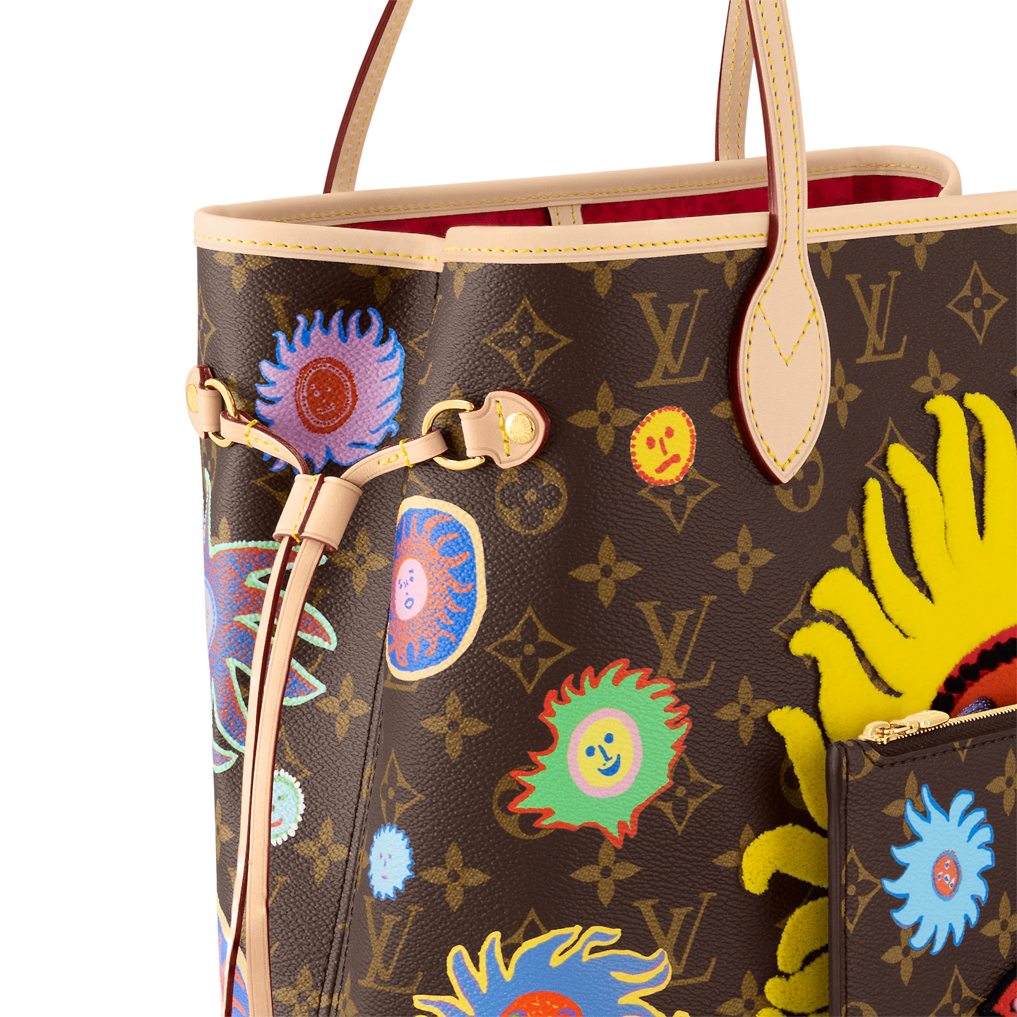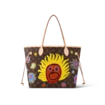 For the Faces theme of the new Louis Vuitton x Yayoi Kusama collection. the LVxYK Neverfull MM comes in Monogram canvas emblazoned with images from My Eternal Soul. a series of paintings that the celebrated Japanese artist began in 2009. A bright red face shouting with joy is surrounded by smaller smiling faces in pulsating colors. A handy city bag. and a collector’s item for art lovers and Monogram fans.