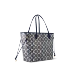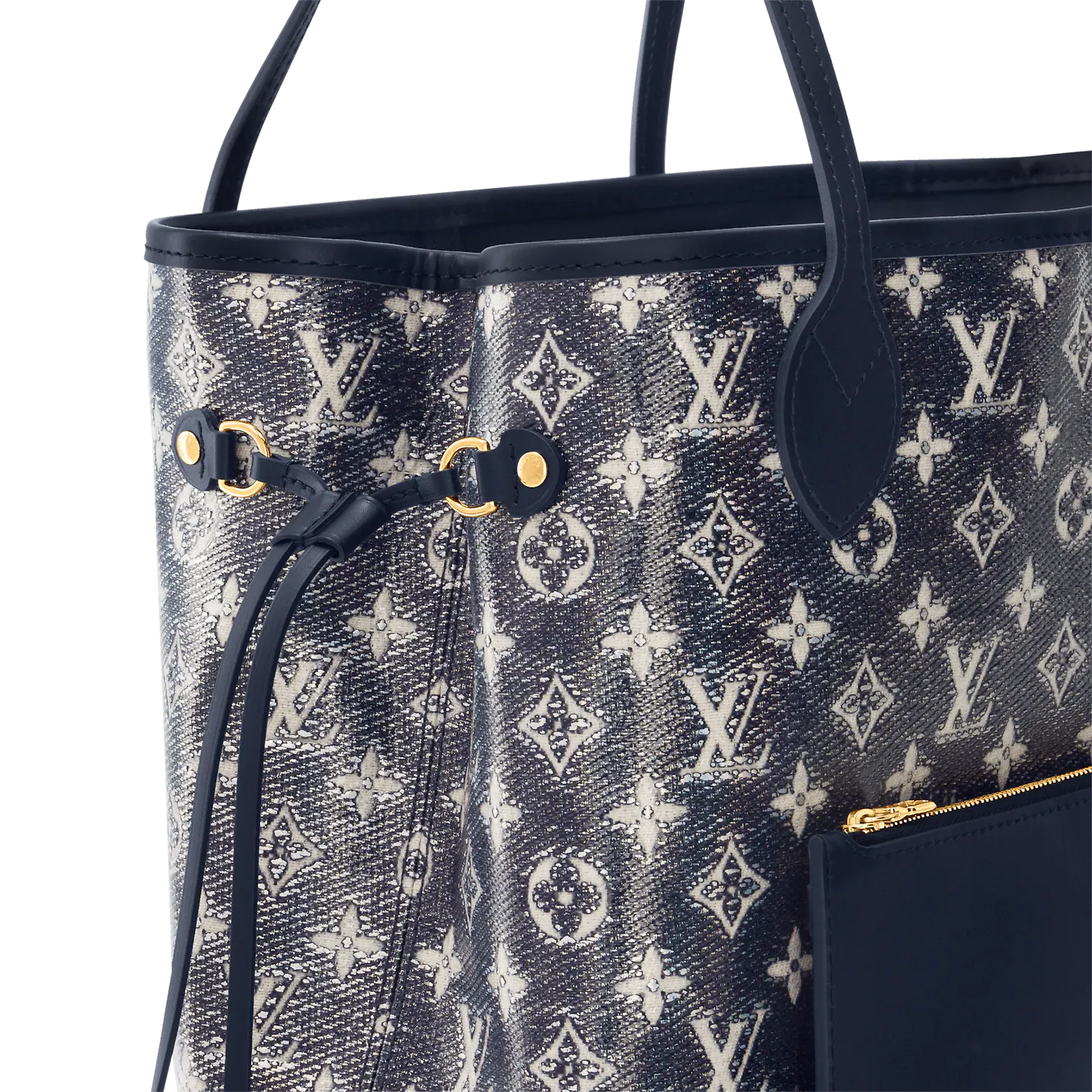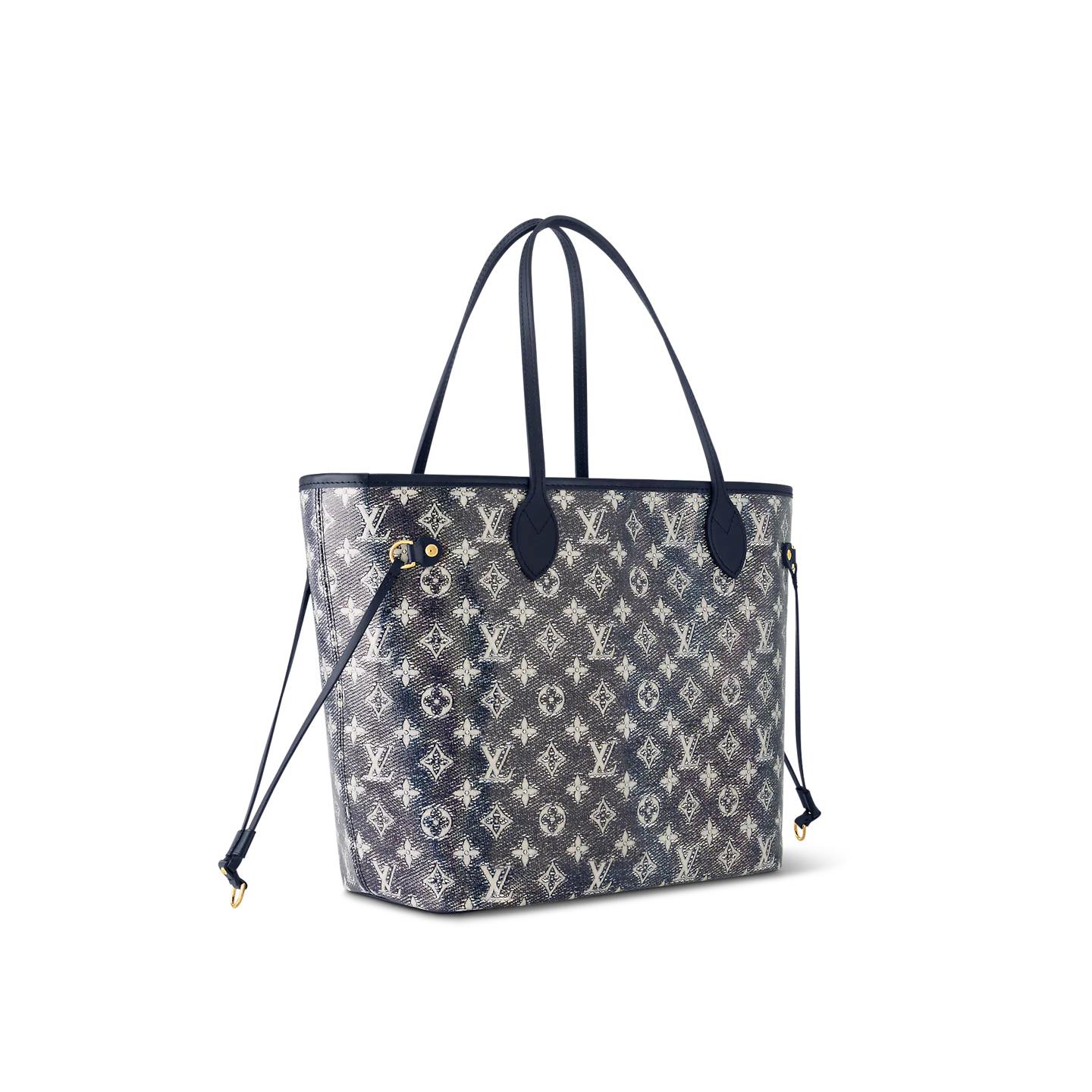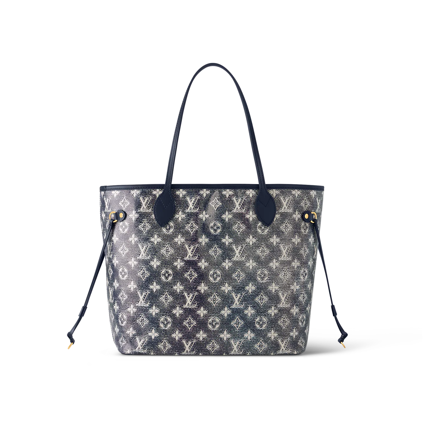 Monoglam coated canvas brings an eye-catching. almost-holographic feel to the Neverfull MM tote bag. This canvas is made from a jacquard base of cotton. covered by a bright lamination that reveals a variety of hues when it catches the ligh. Slim. comfortable handles slip easily over the shoulder or arm.