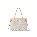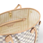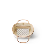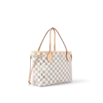 The Neverfull PM tote pairs timeless design with heritage details. Crafted from Damier Azur canvas with natural cowhide trim. it is capacious yet not bulky. with side laces that cinch for a sleek allure or loosen for a casual look. Slim. comfortable handles slip easily over the shoulder or arm. Lined in colorful textile. it features a removable pouch which can be used as a clutch or an extra pocket.