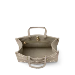 The OnTheGo MM is a medium-sized tote bag with two sets of handles. long and short. for hand and shoulder carry. Fashioned from supple grained cowhide leather. it features a Monogram pattern. printed on and embossed into the leather. The spacious interior. which can hold a laptop and other work essentials. make it a versatile everyday bag.
