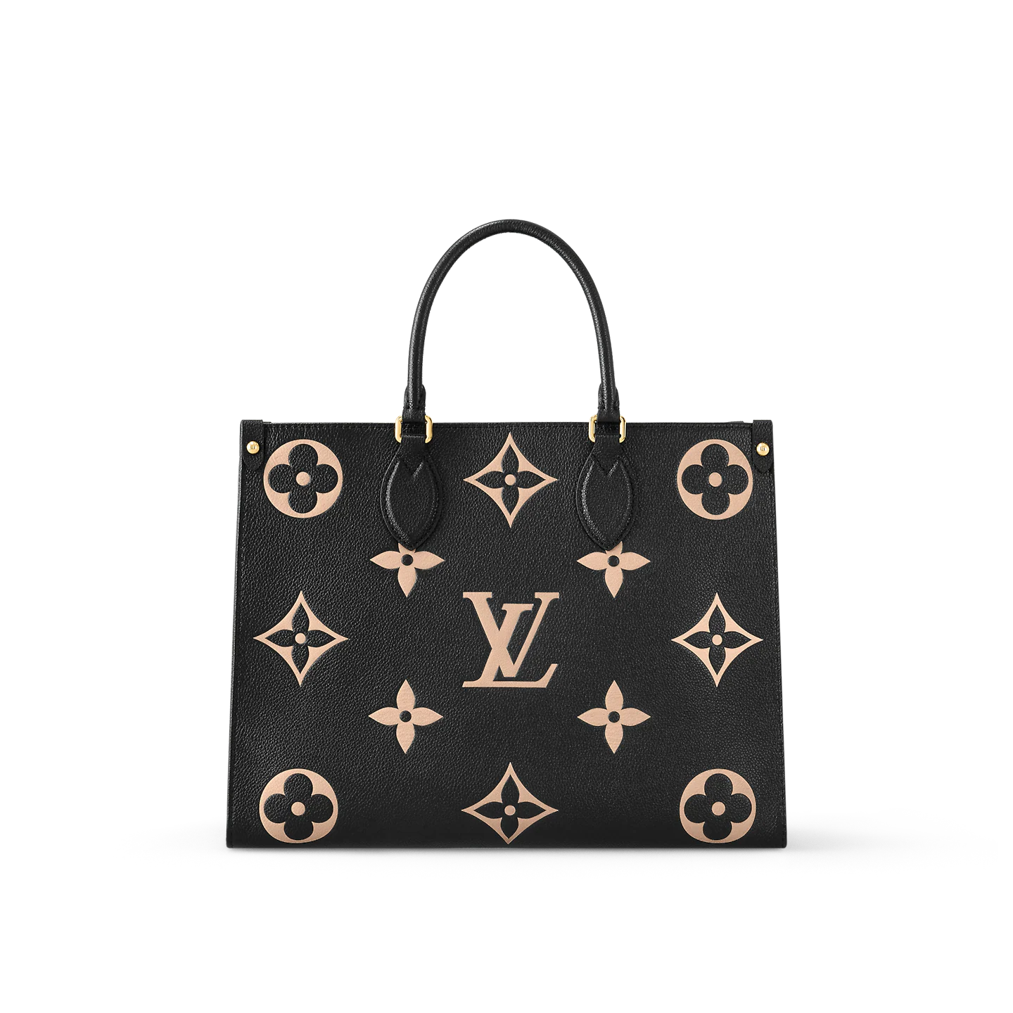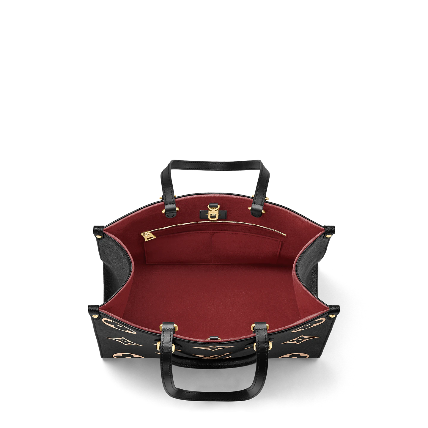 The OnTheGo MM is a medium-sized tote bag with two sets of handles. long and short. for hand and shoulder carry. Fashioned from supple grained cowhide leather. it features a Medium Monogram pattern. printed on and embossed into the leather. The spacious interior. which can hold a laptop and other work essentials. make it a versatile everyday bag.