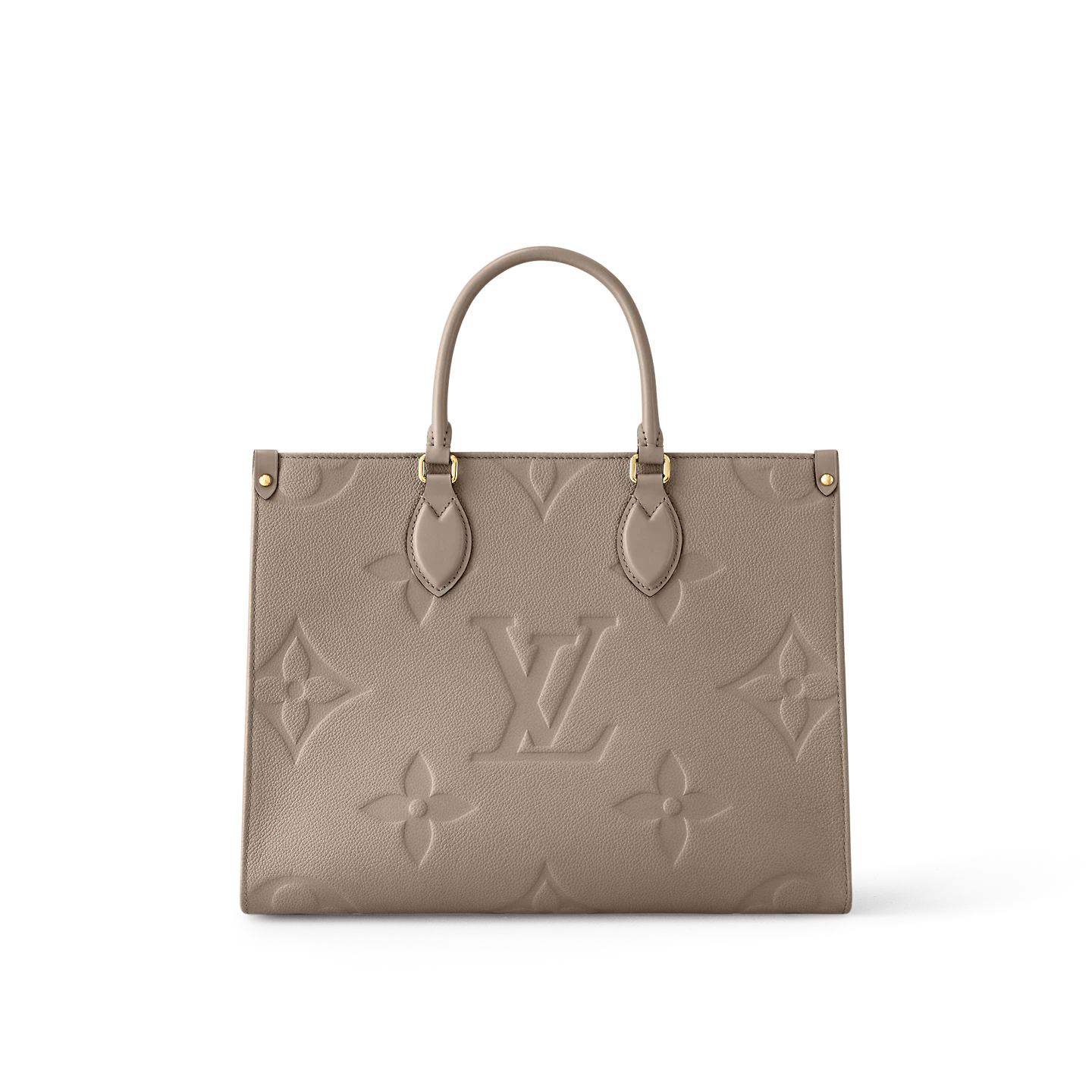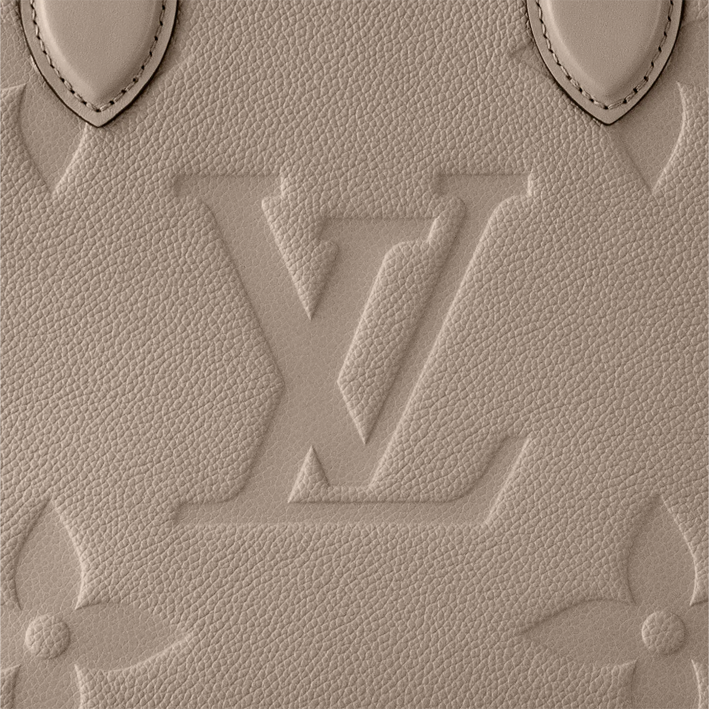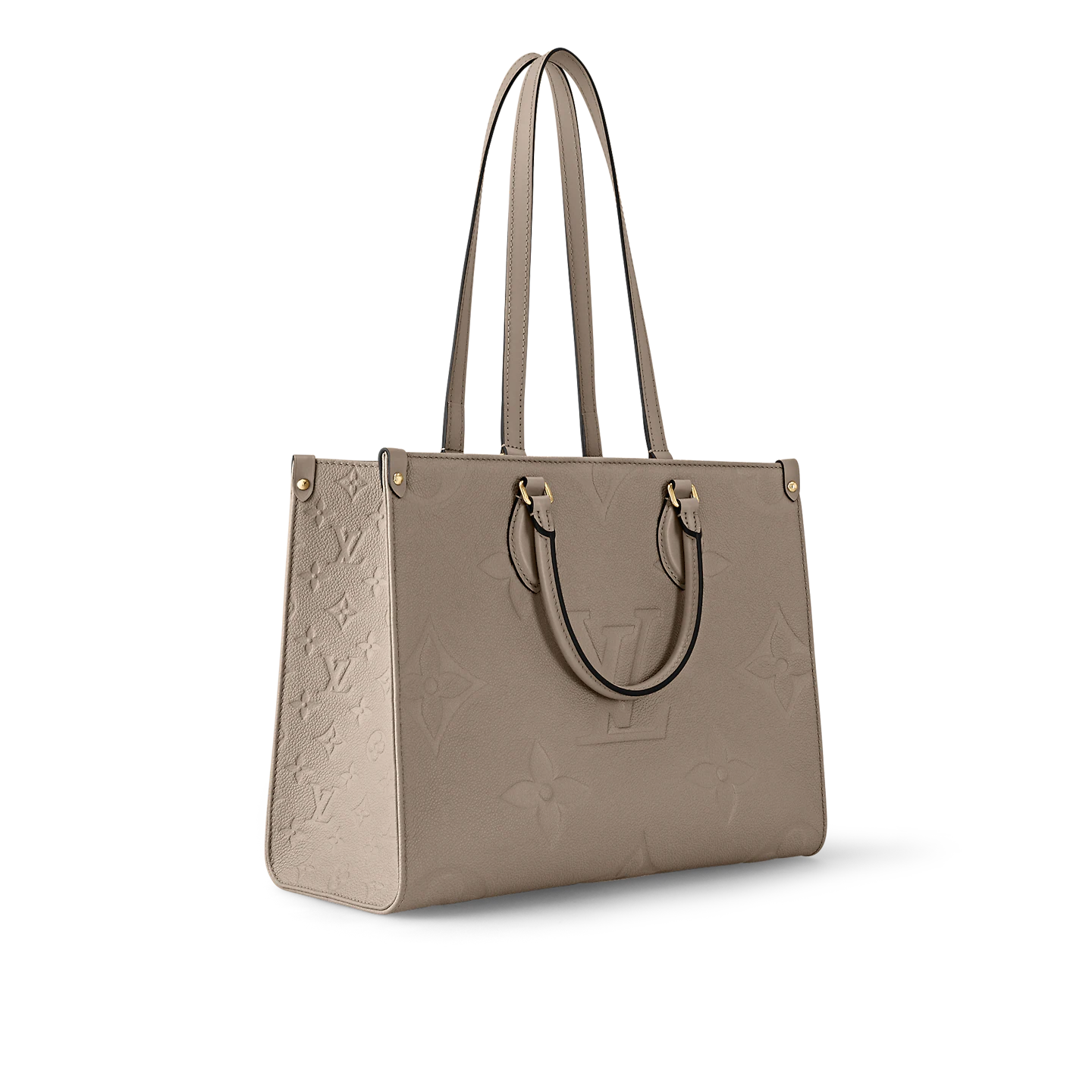 For Spring 2021. Louis Vuitton launches the Onthego MM tote bag in grained Monogram Empreinte. a soft leather that is embossed with a large and modern Monogram pattern. Thanks to the square shape. it boasts a generous capacity and can easily fit a laptop. Its articulated top handles and shoulder straps give carrying options.