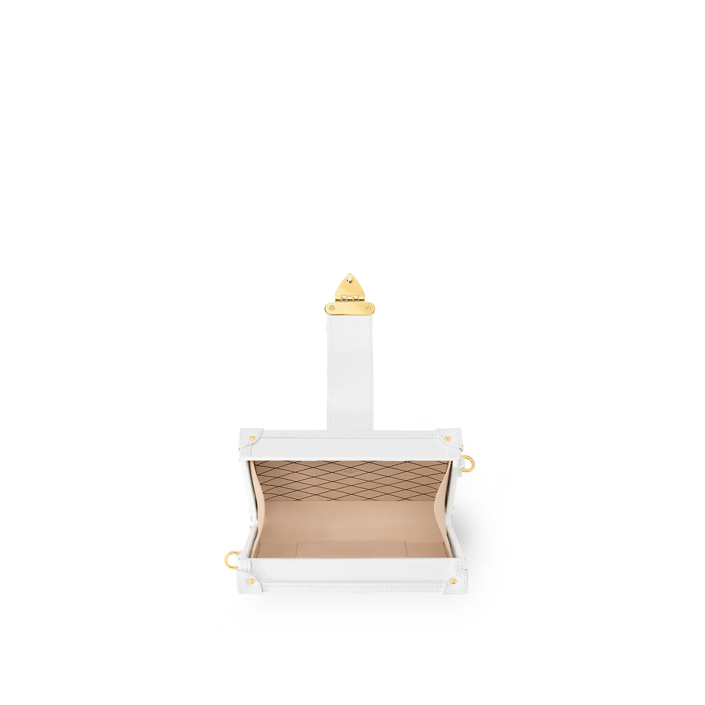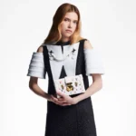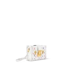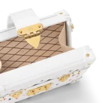 The Petite Malle Tricolore is made from white lambskin with a Monogram in red. white. and blue. the colors of the French flag. The gold-color S-lock and clasps and white cowhide-leather trim complete Nicolas Ghesquière’s celebration of the House’s French heritage. It can be carried like a clutch or with its removable and adjustable strap.