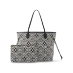 For Winter 2020. the House’s classic Neverfull MM tote is made from Nicolas Ghesqui??re’s new signature textile: a modern pattern featuring many of the House’s symbols. Inspired by wallpapers from the 1960s. Monogram Flowers and LV Initials are combined with 1854s. the year Louis Vuitton started his company. to create a pattern with a neo-vintage feel.