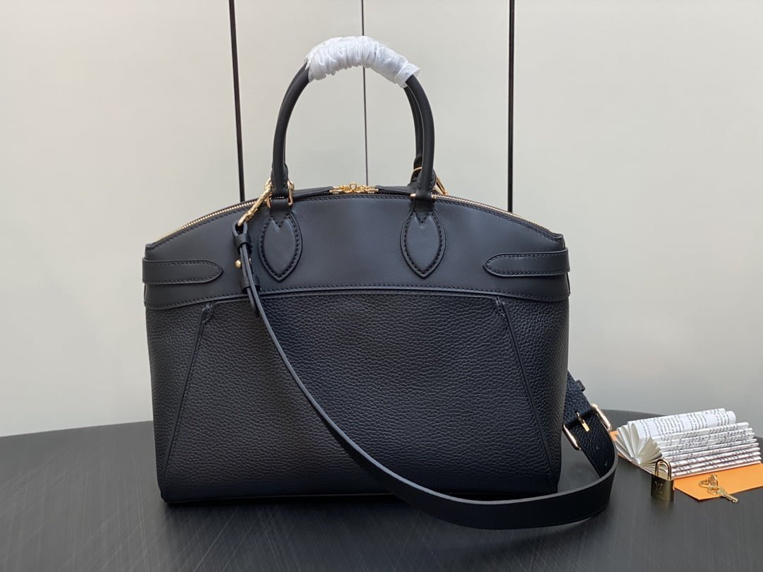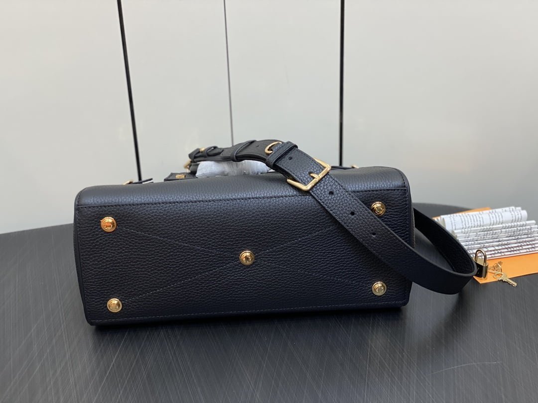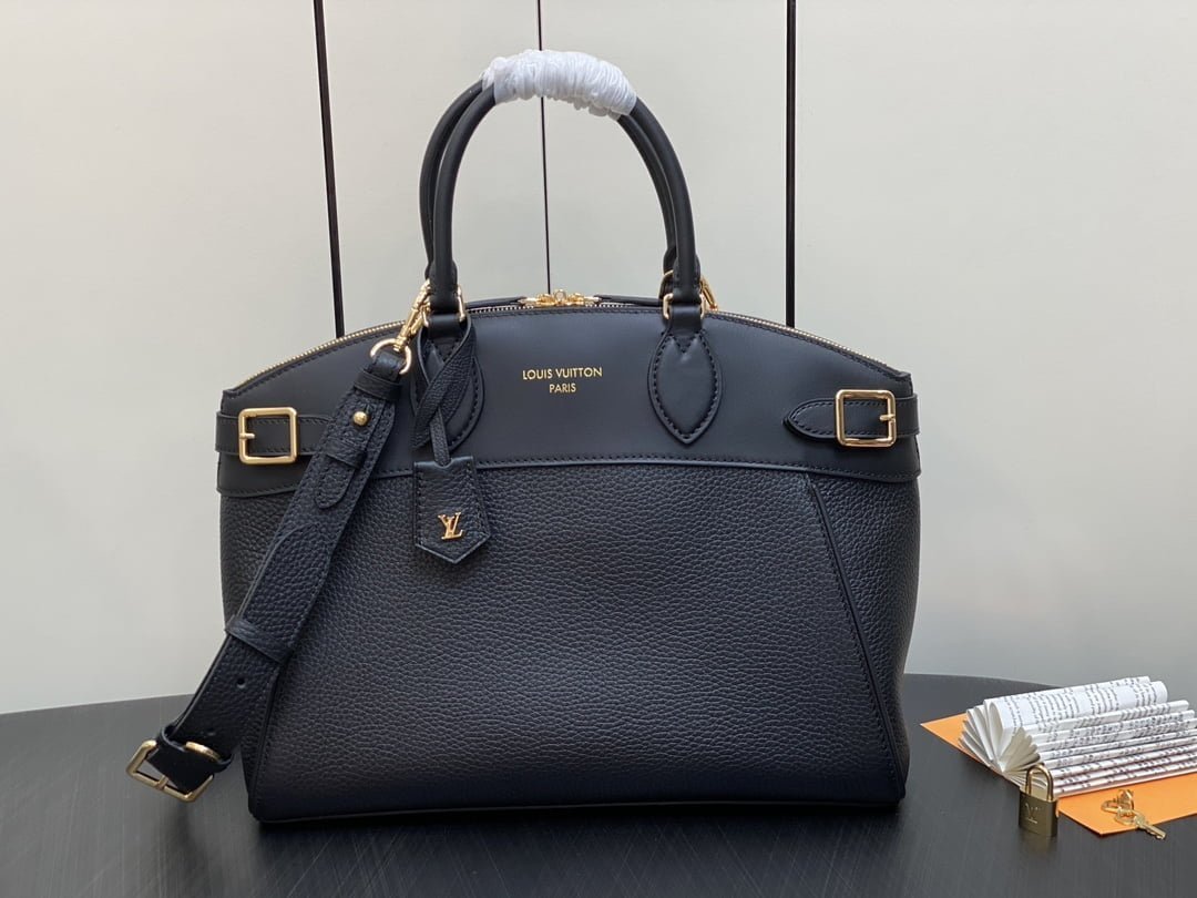 The zys lock it mm Bag m22914 22925 22927 23061 ays lock it mm Bag is a sophisticated and practical combination of grainy taurillon leather and smooth calfskin. complete with gold finish buckle and hardware. Symbolic house decorations include padlocks. key bells and hot-stamped Louis Vuitton signatures. This tote comes with an articulated top handle and a detachable strap. offering a variety of carrying options. Dimensions: 36 x 29 x 15 cm