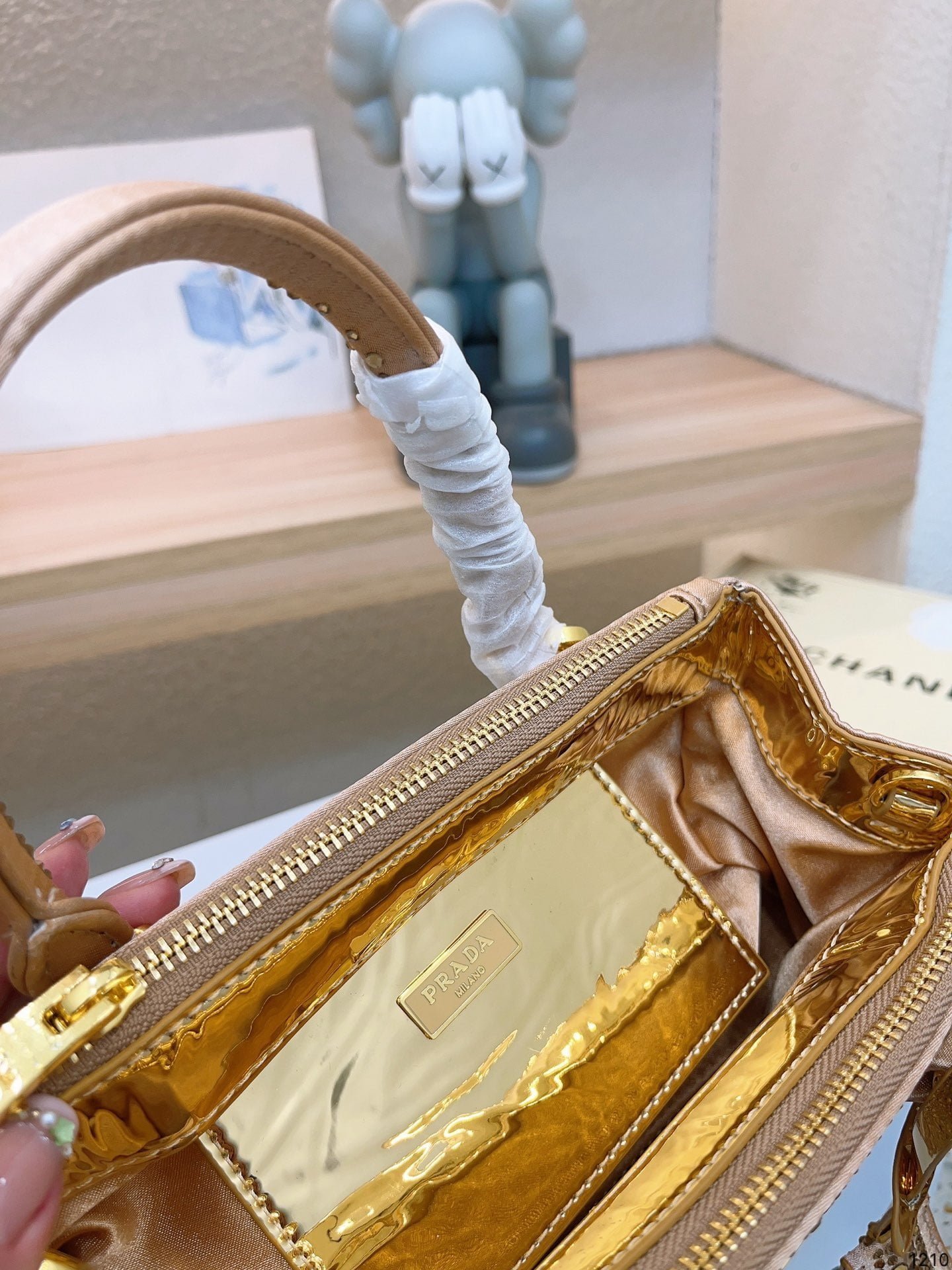 Prada this season a lot of BlingBling. not only bags and hats. clothes are burst! It’s so beautiful! This kind of see the drill can not extricate themselves! Immediately saw this crystal kill bag convex store only gold. silver. feel good like size 23*16cm