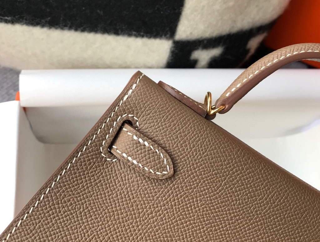 Replica Hermes Kelly Bag Hermes 19CM Epsom Shoulder Mini Bag Dark gray 20461 on sale now.