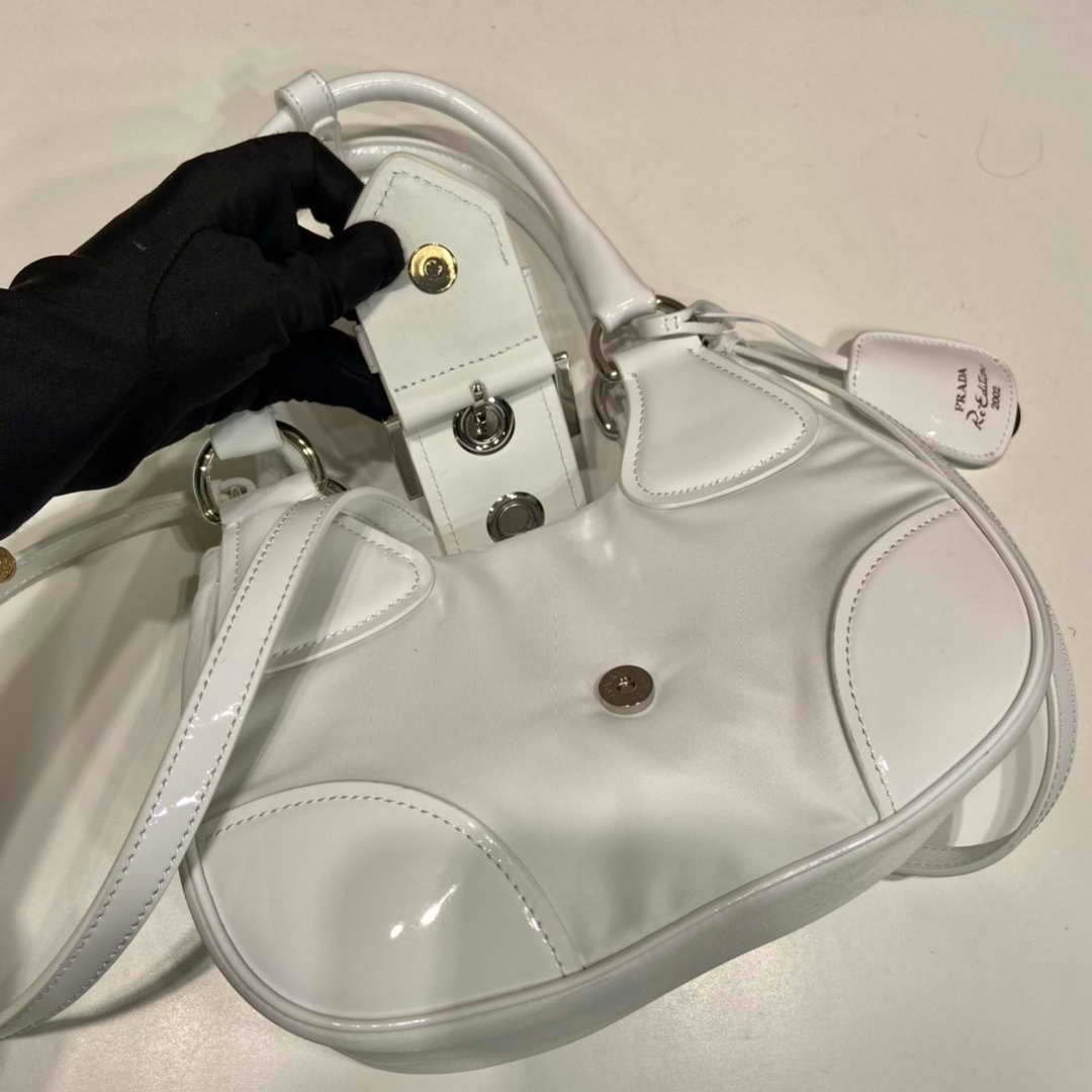 Replica Prada 1BA368 Moon padded patent leather bag White