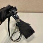 Reimagining the iconic lines of a model from the Prada archives from the 2000s. this nappa leather bag combines traditional elements reinterpreting them in a new way. with an innovative soft design. Softness and simplicity of the silhouette define this hobo bag. embellished by the ton-sur-ton triangle logo that frames the lettering logo. creating a three-dimensional and material game and enriching the design of the accessory.
