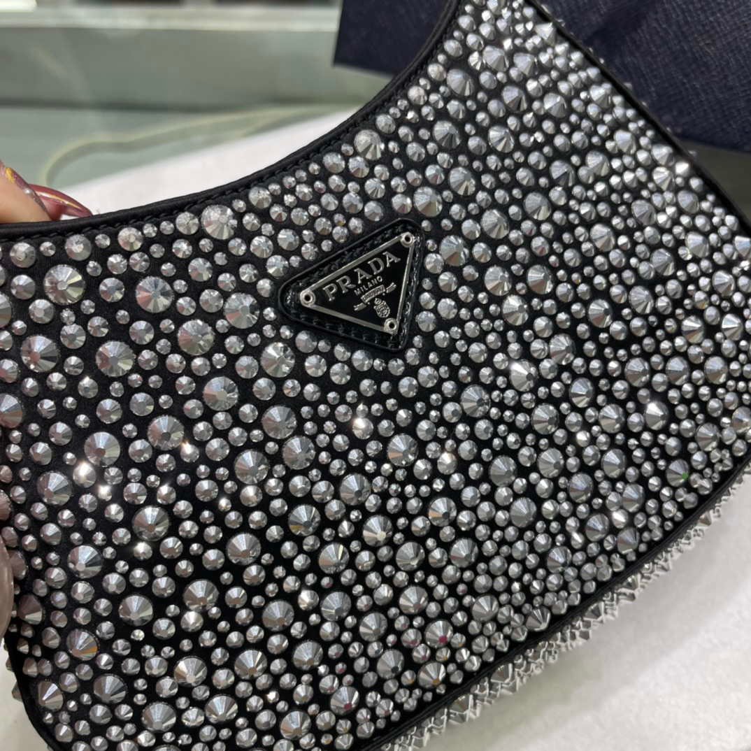 Prada 1BC169 Prada Cleo satin bag with appliqués Black on sale now.