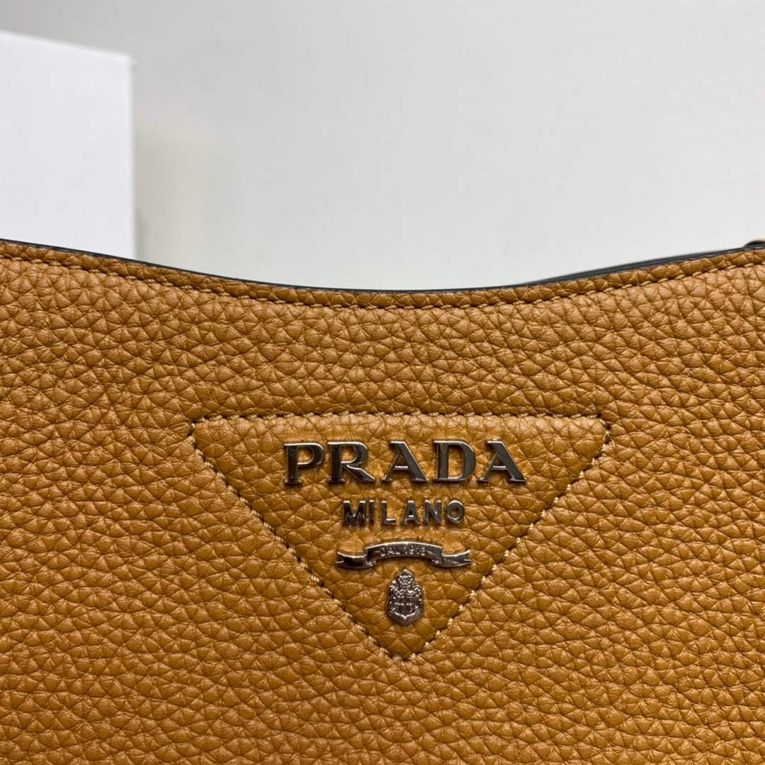 Prada 1BH191 Leather mini shoulder bag tan on sale now.
