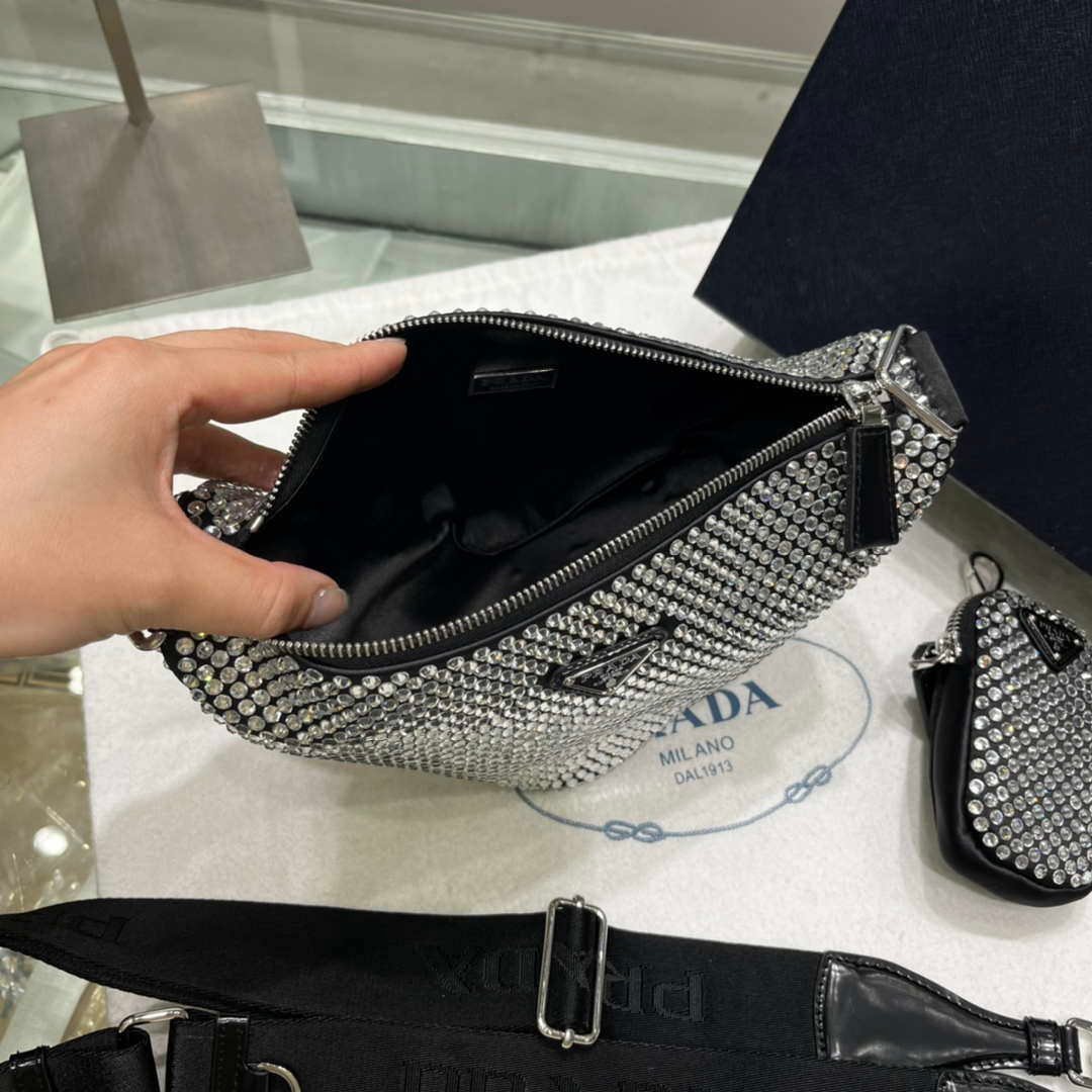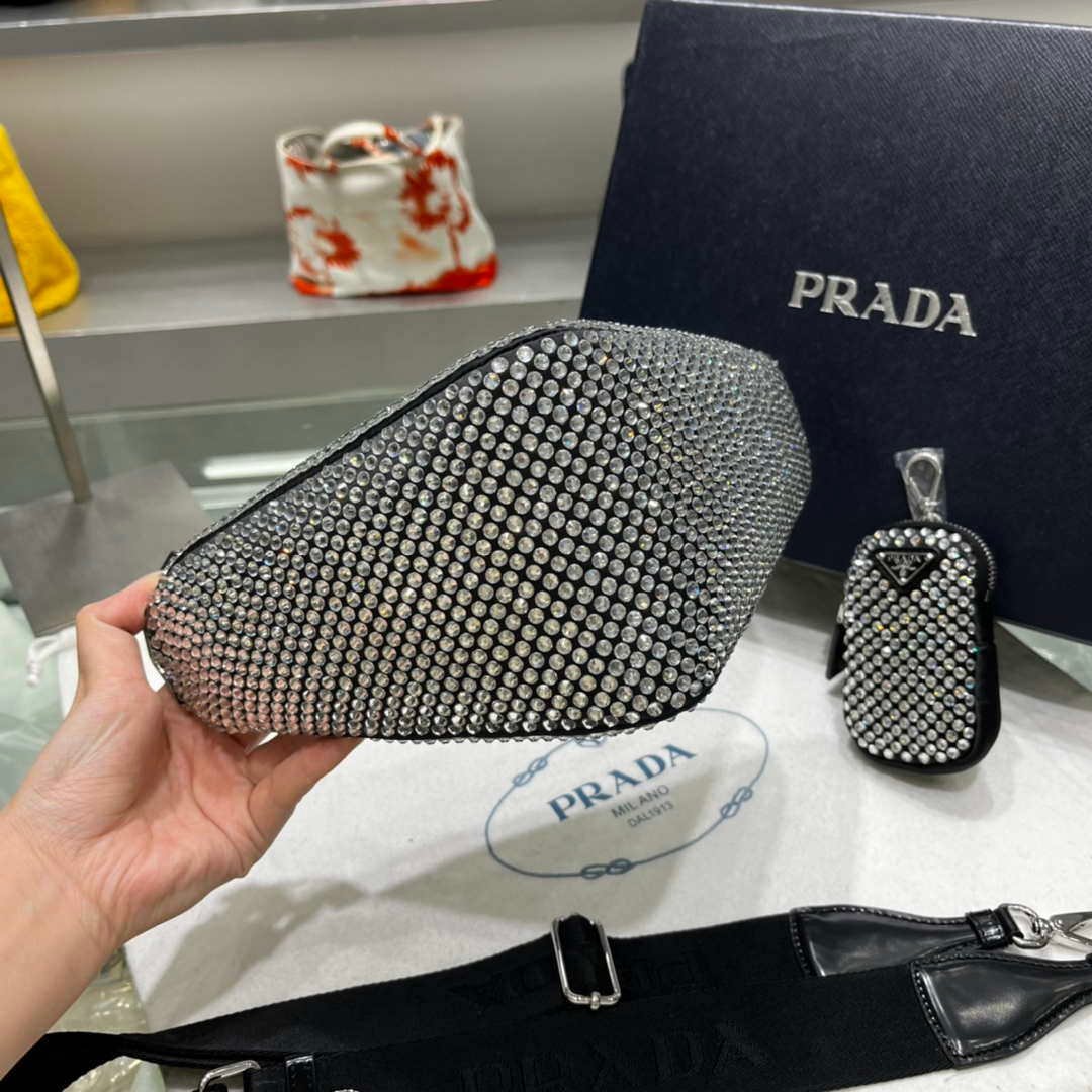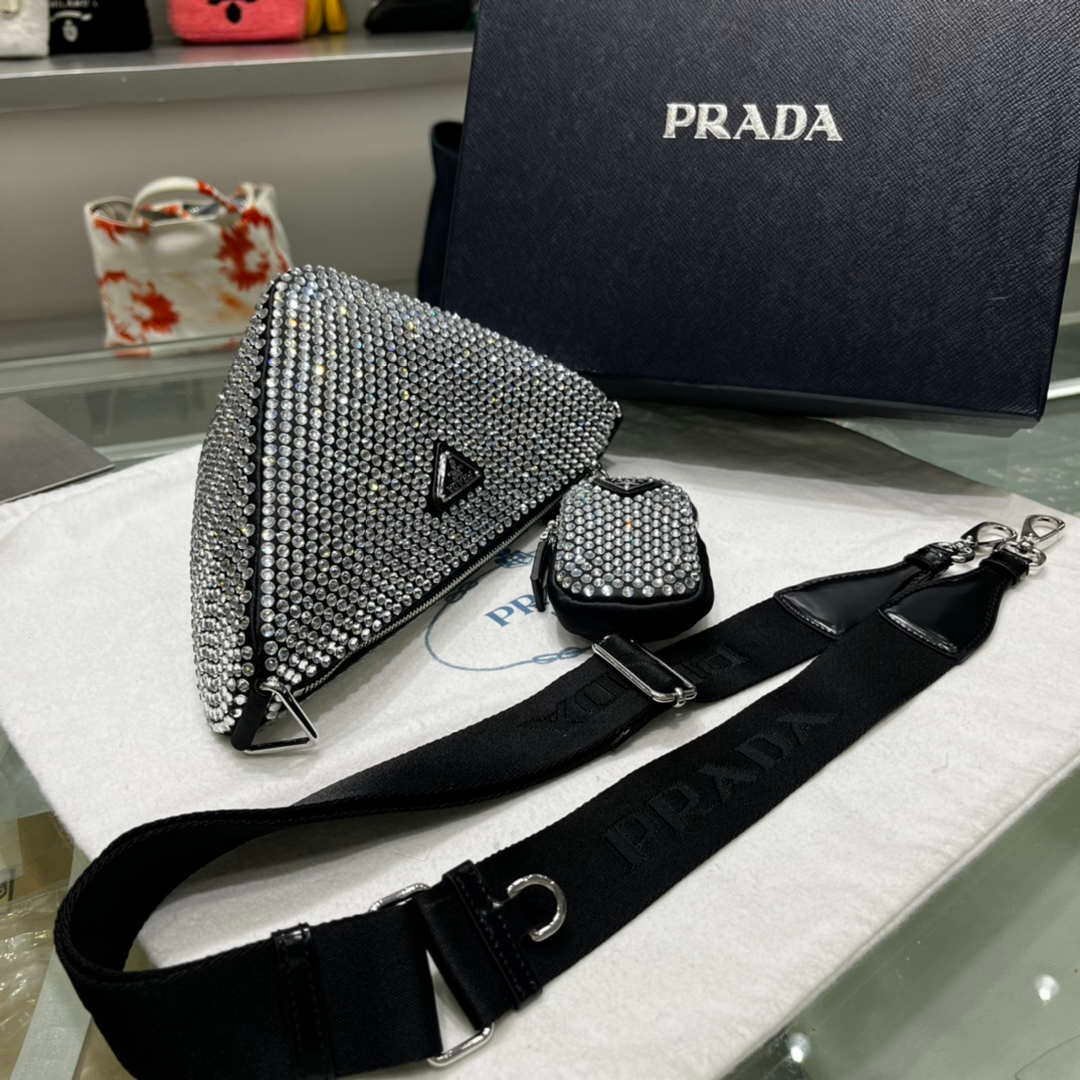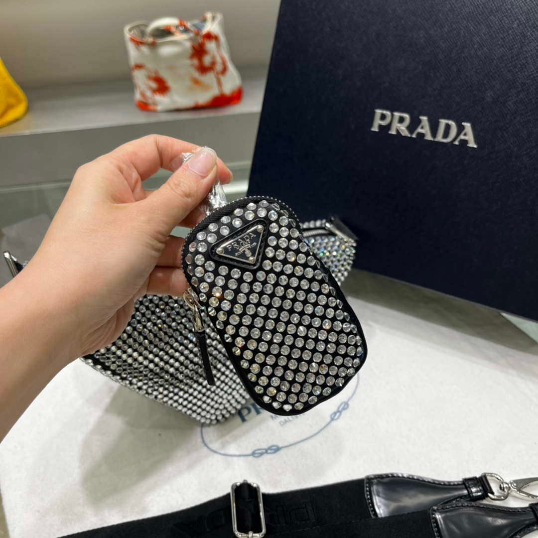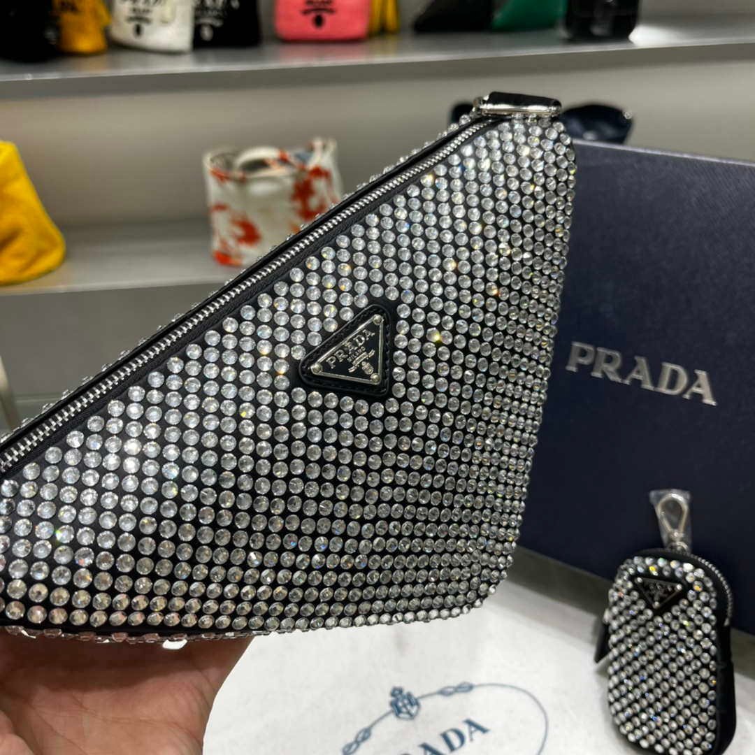 You will get an AAAAA quality knockoff Prada 1NE190 Crystal-studded satin pouch Black with the best price. 1:1 made as the original. If you are not satisfied with the product you received. please be sure to contact us. we promise to solve the problem for you. We are confident that you will adore our products and that we can establish a long-term business relationship with each other.