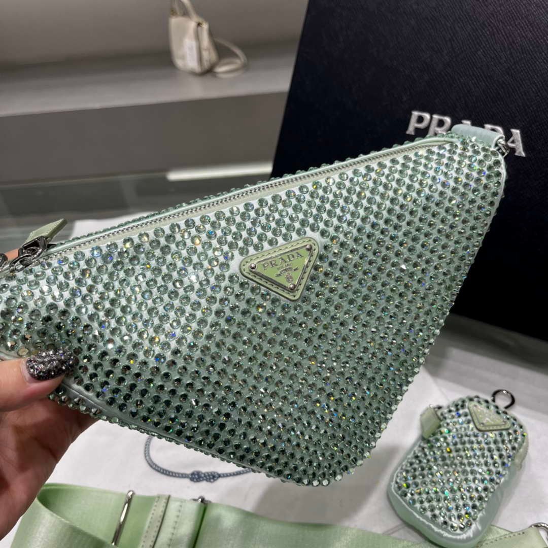 Replica Prada 1NE190 Crystal-studded satin pouch Green