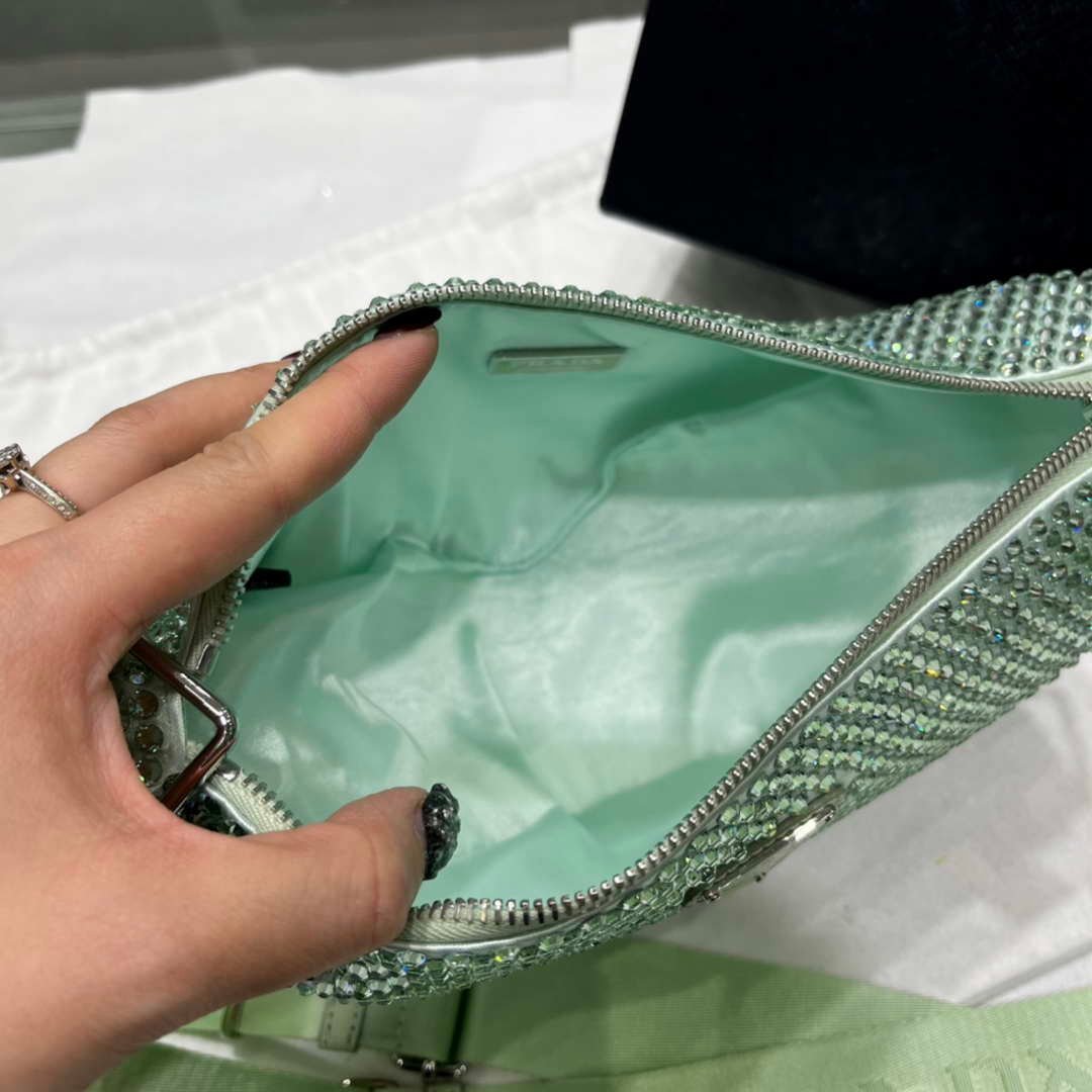 You will get an AAAAA quality knockoff Prada 1NE190 Crystal-studded satin pouch Green with the best price. 1:1 made as the original. If you are not satisfied with the product you received. please be sure to contact us. we promise to solve the problem for you. We are confident that you will adore our products and that we can establish a long-term business relationship with each other.