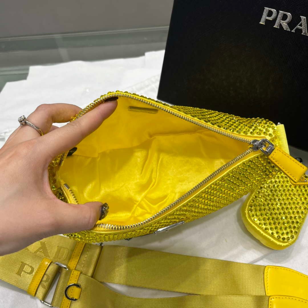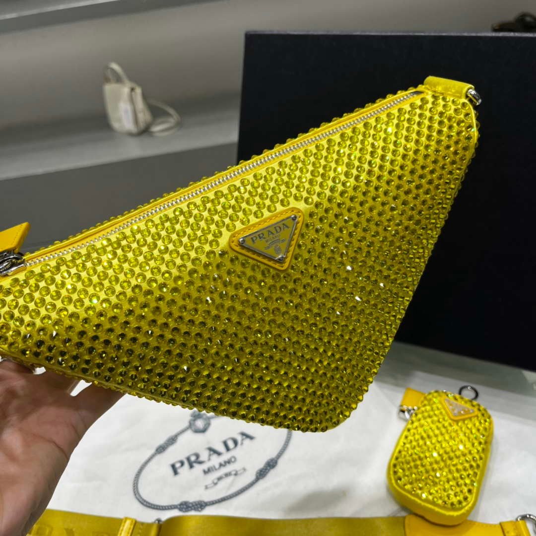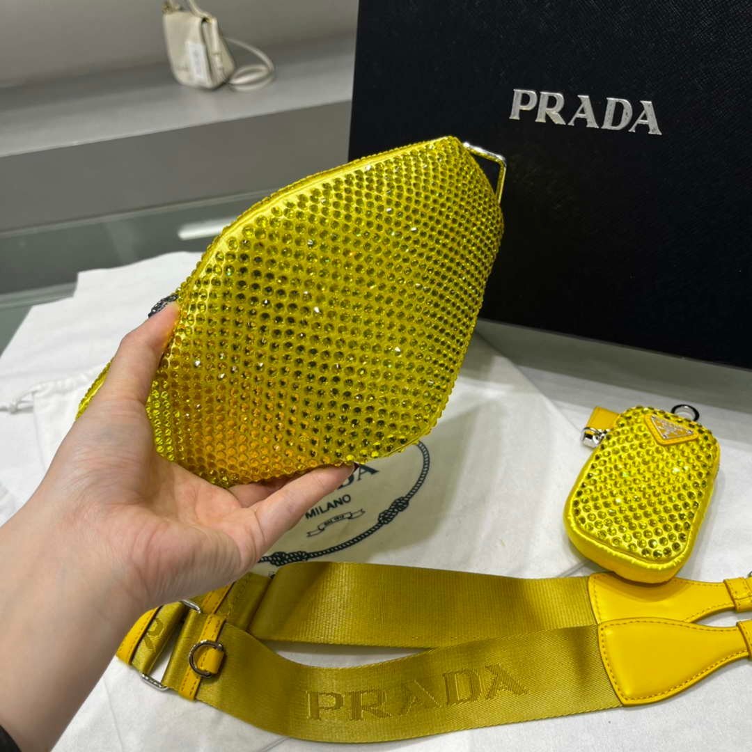 You will get an AAAAA quality knockoff Prada 1NE190 Crystal-studded satin pouch Yellow with the best price. 1:1 made as the original. If you are not satisfied with the product you received. please be sure to contact us. we promise to solve the problem for you. We are confident that you will adore our products and that we can establish a long-term business relationship with each other.