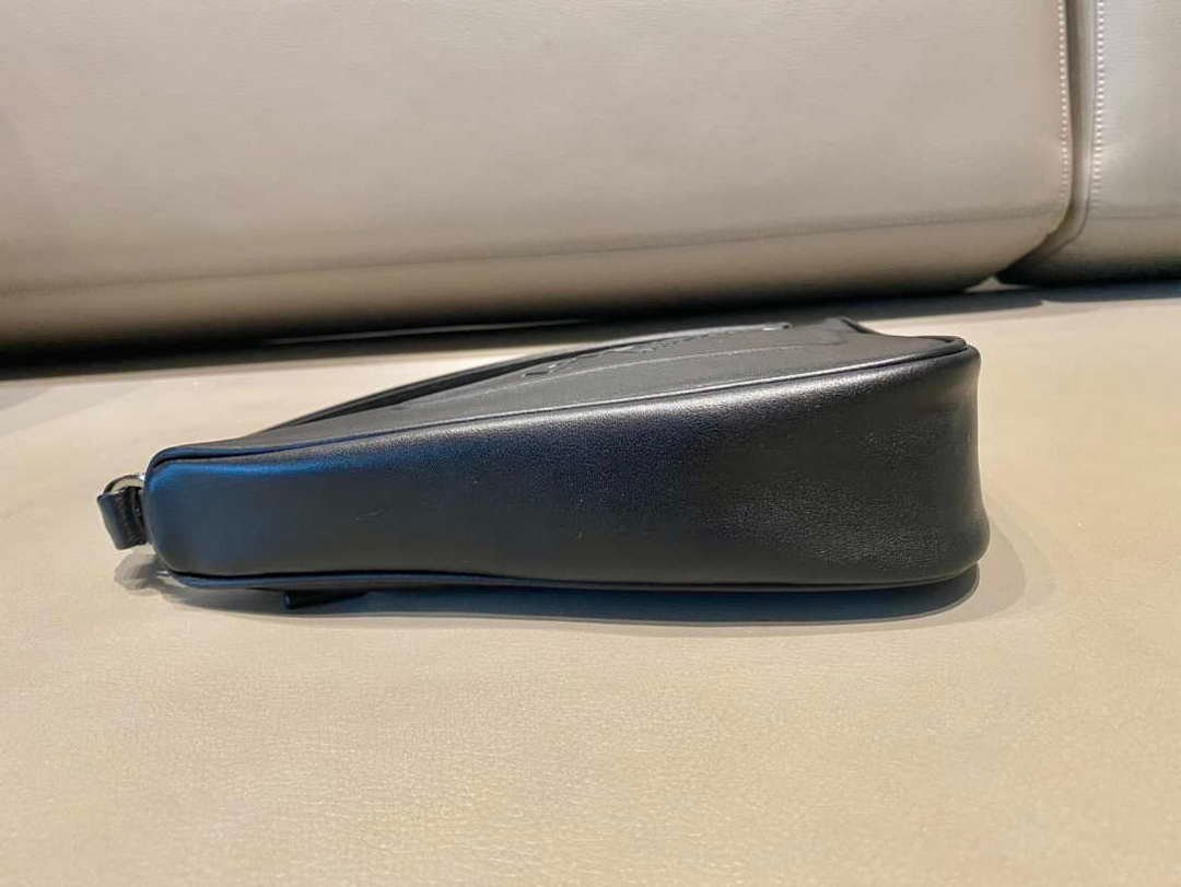 Prada 1NQ043 Triangle leather pouch Black on sale now.