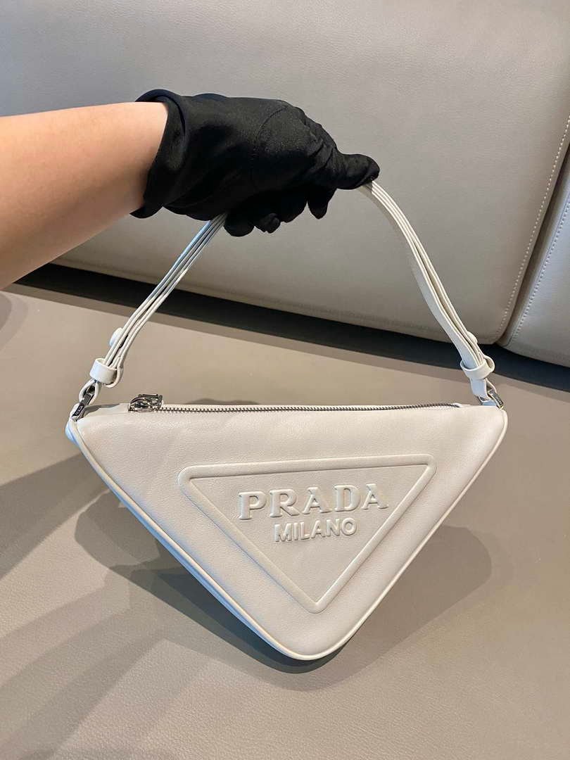 You will get an AAAAA quality knockoff Prada 1NQ043 Triangle leather pouch White with the best price. 1:1 made as the original. If you are not satisfied with the product you received. please be sure to contact us. we promise to solve the problem for you. We are confident that you will adore our products and that we can establish a long-term business relationship with each other.