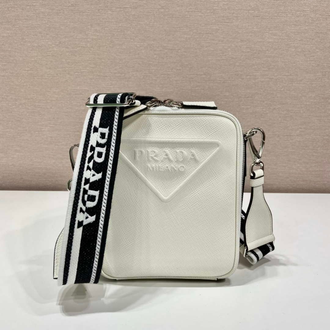 Prada 2VH154 Saffiano leather shoulder bag White on sale now.