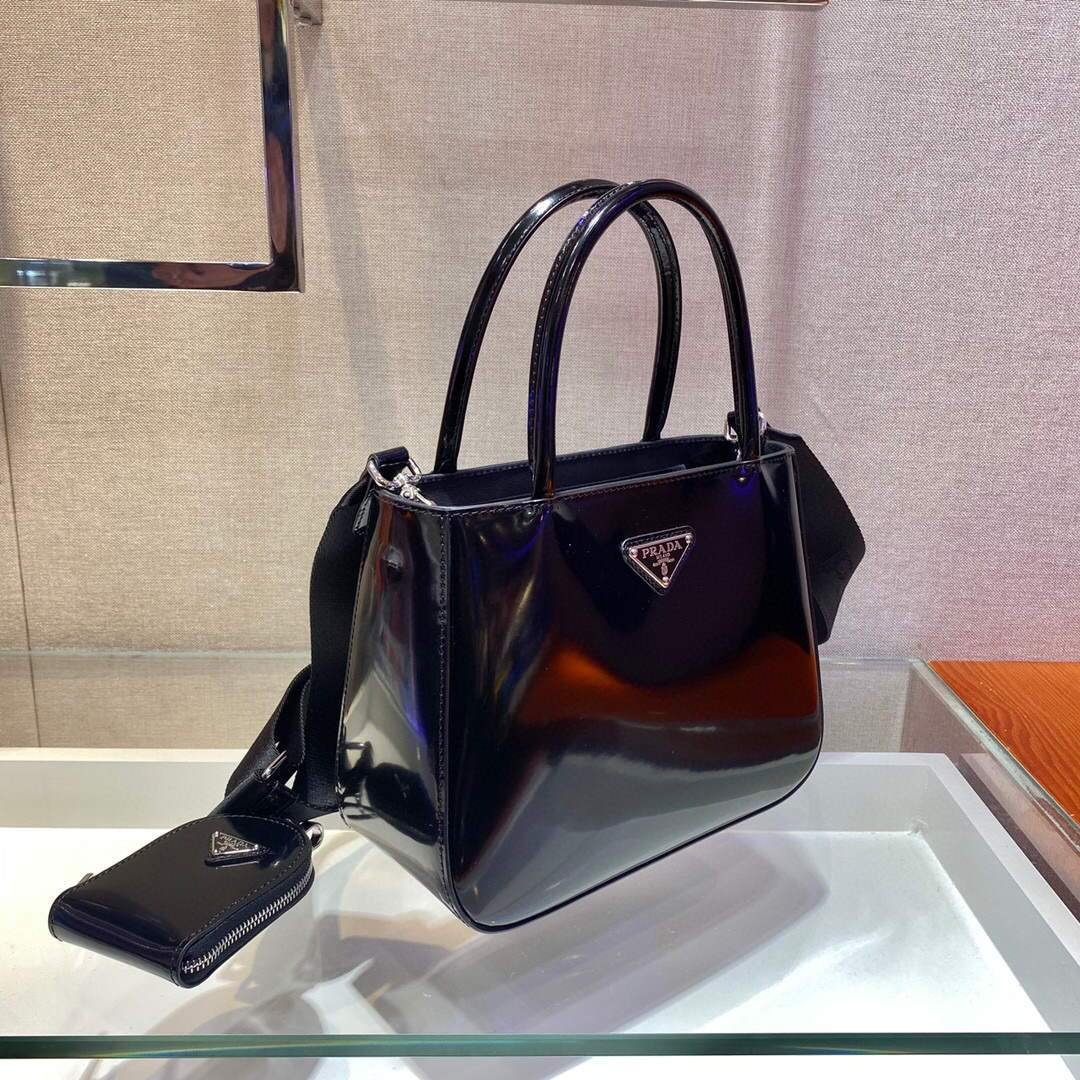 Prada Brushed leather handbag 1BA320 Black on sale now.