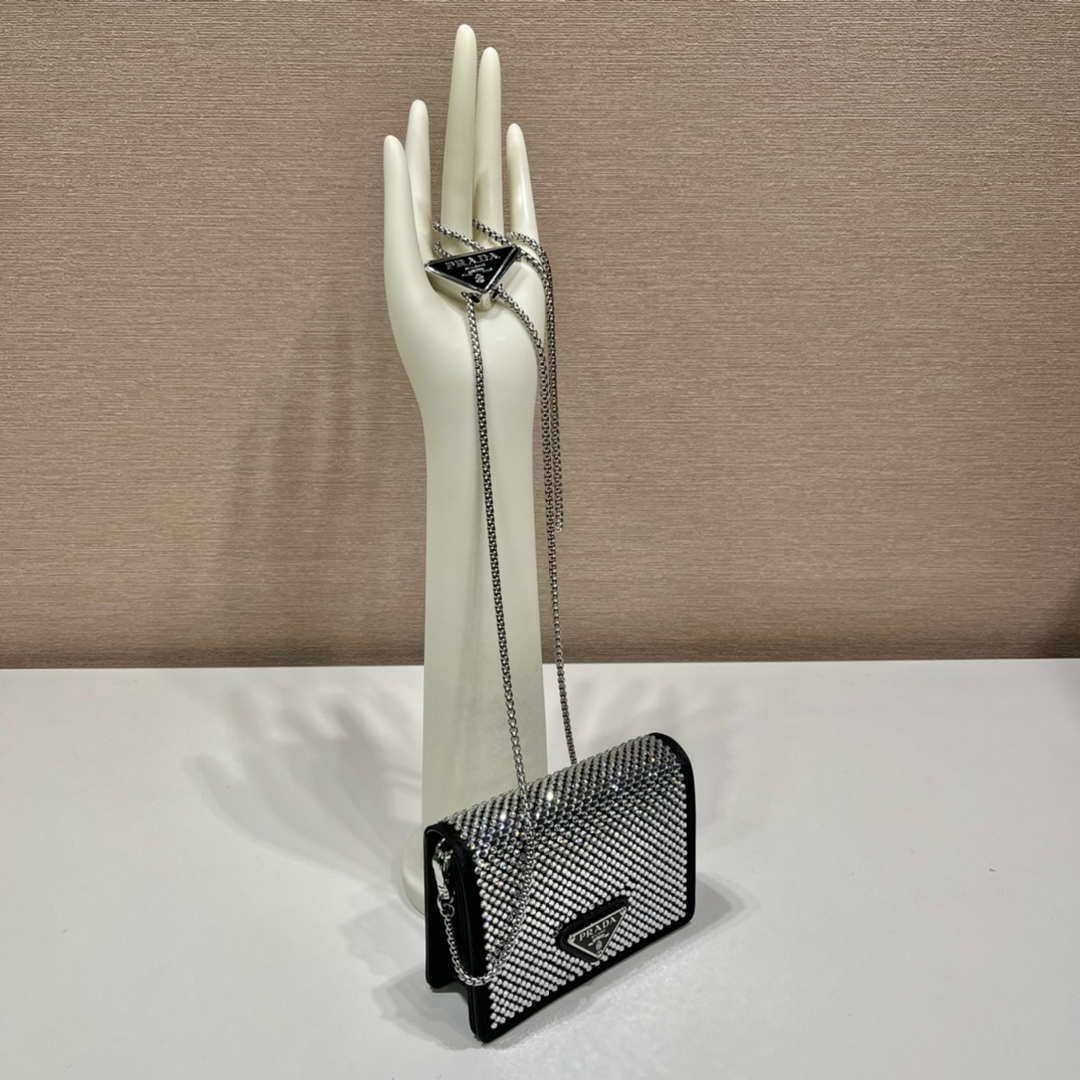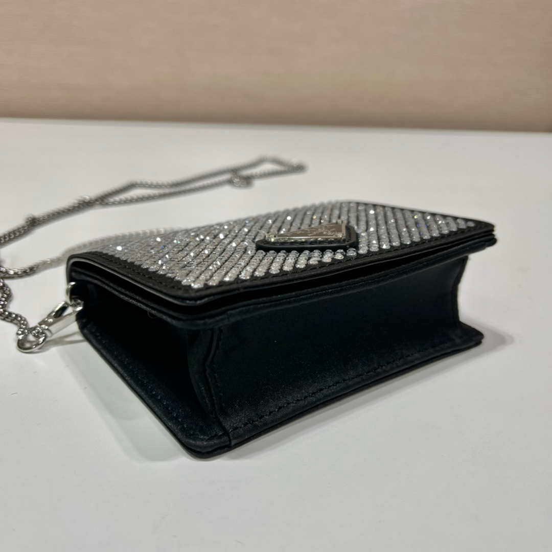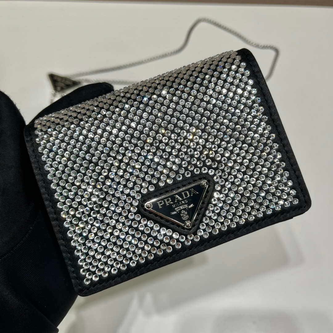 Replica Prada Crystal-studded card holder with shoulder strap 1MR024 Black Crystal